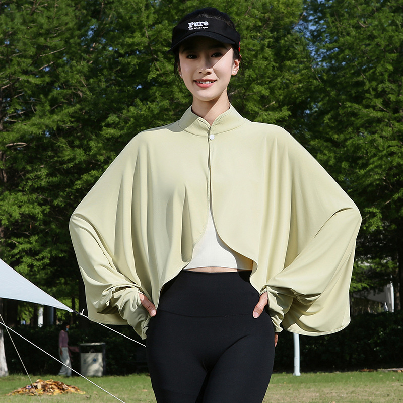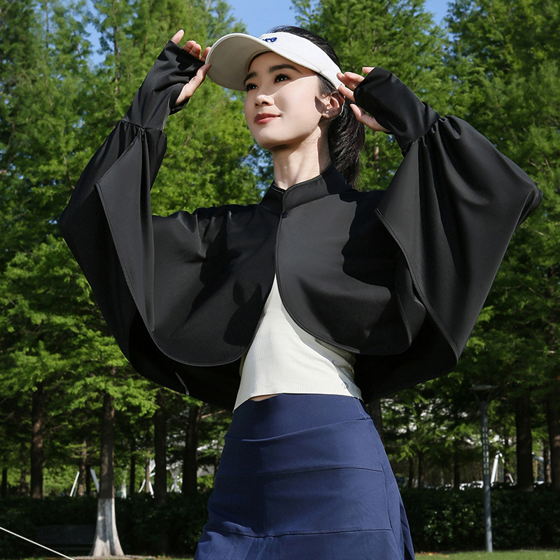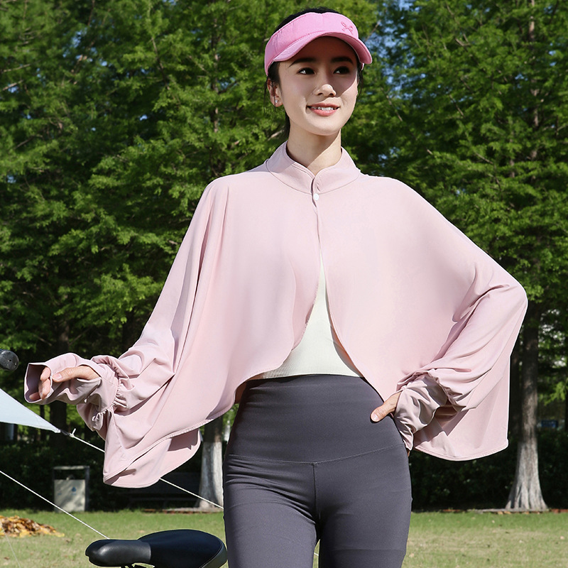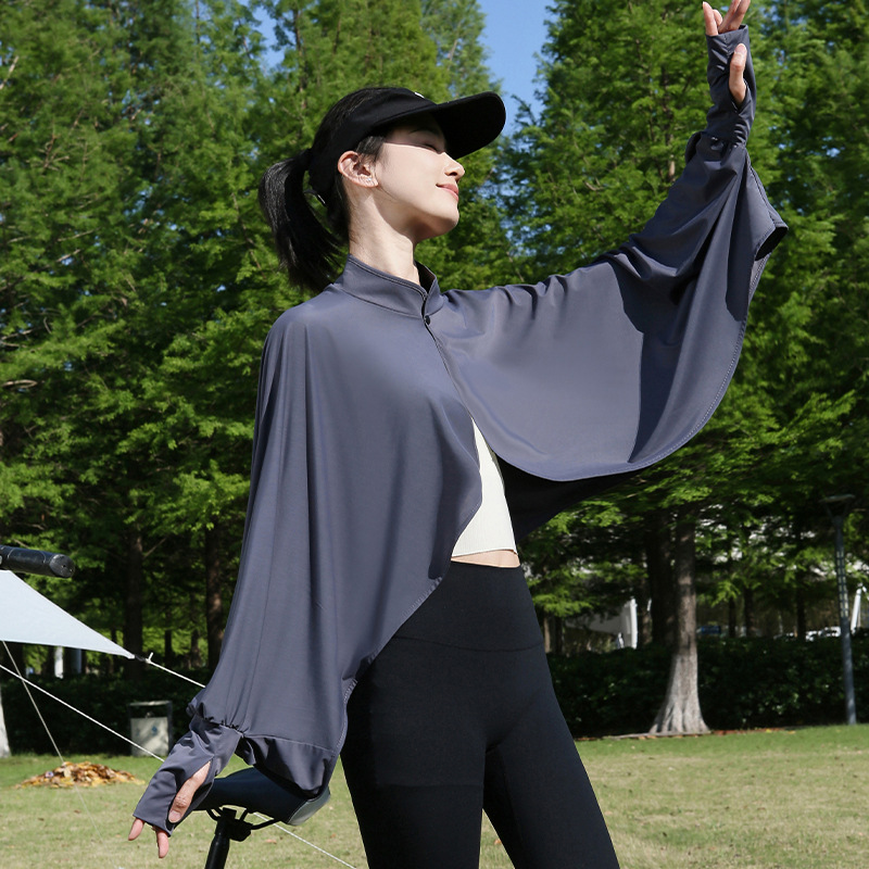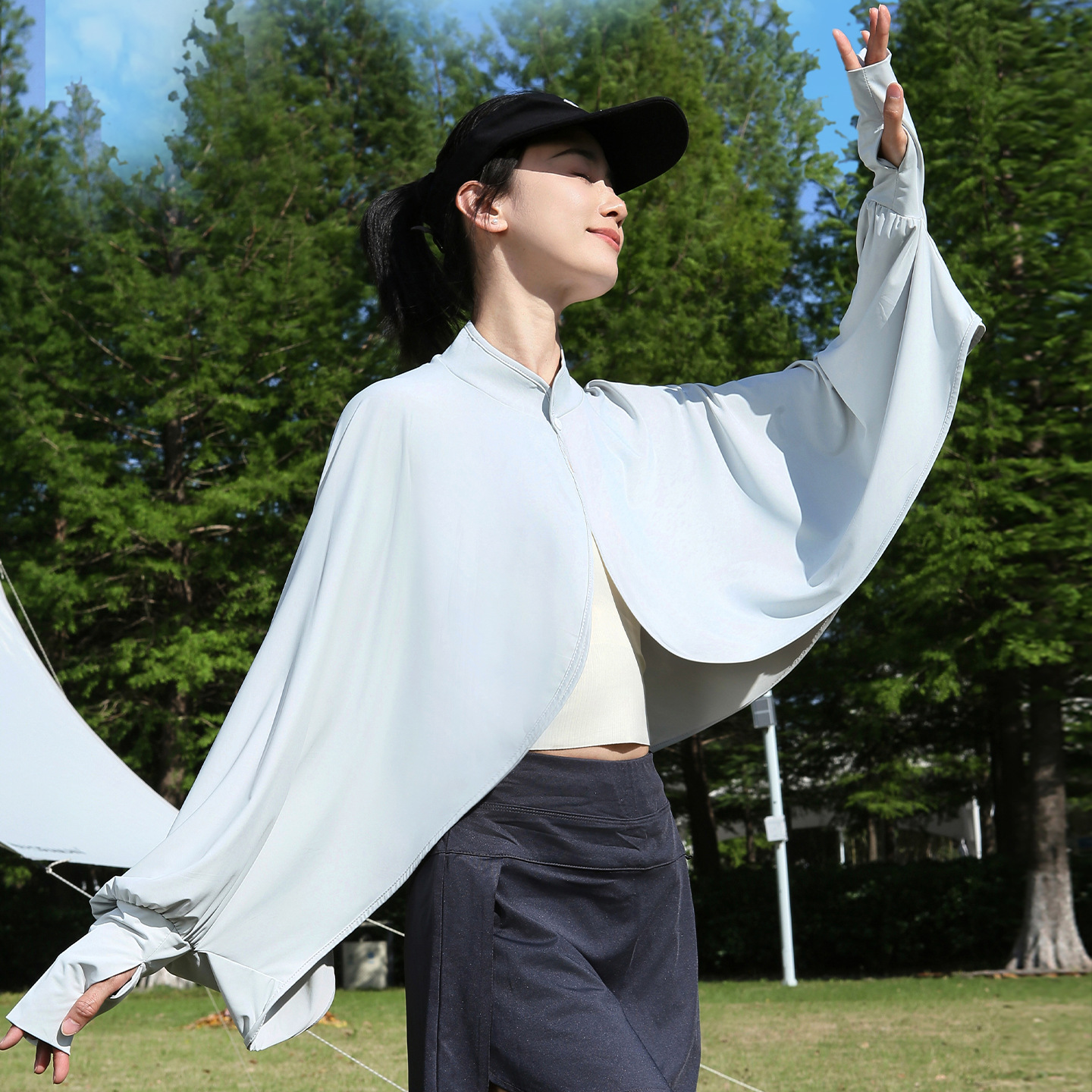 Солнцезащитная одежда из ледяного шелка, шаль с рукавами, интегрированный плащ, женская летняя короткая тонкая верхняя одежда, велосипедная одежда с защитой от УФ-лучей, солнцезащитная одежда