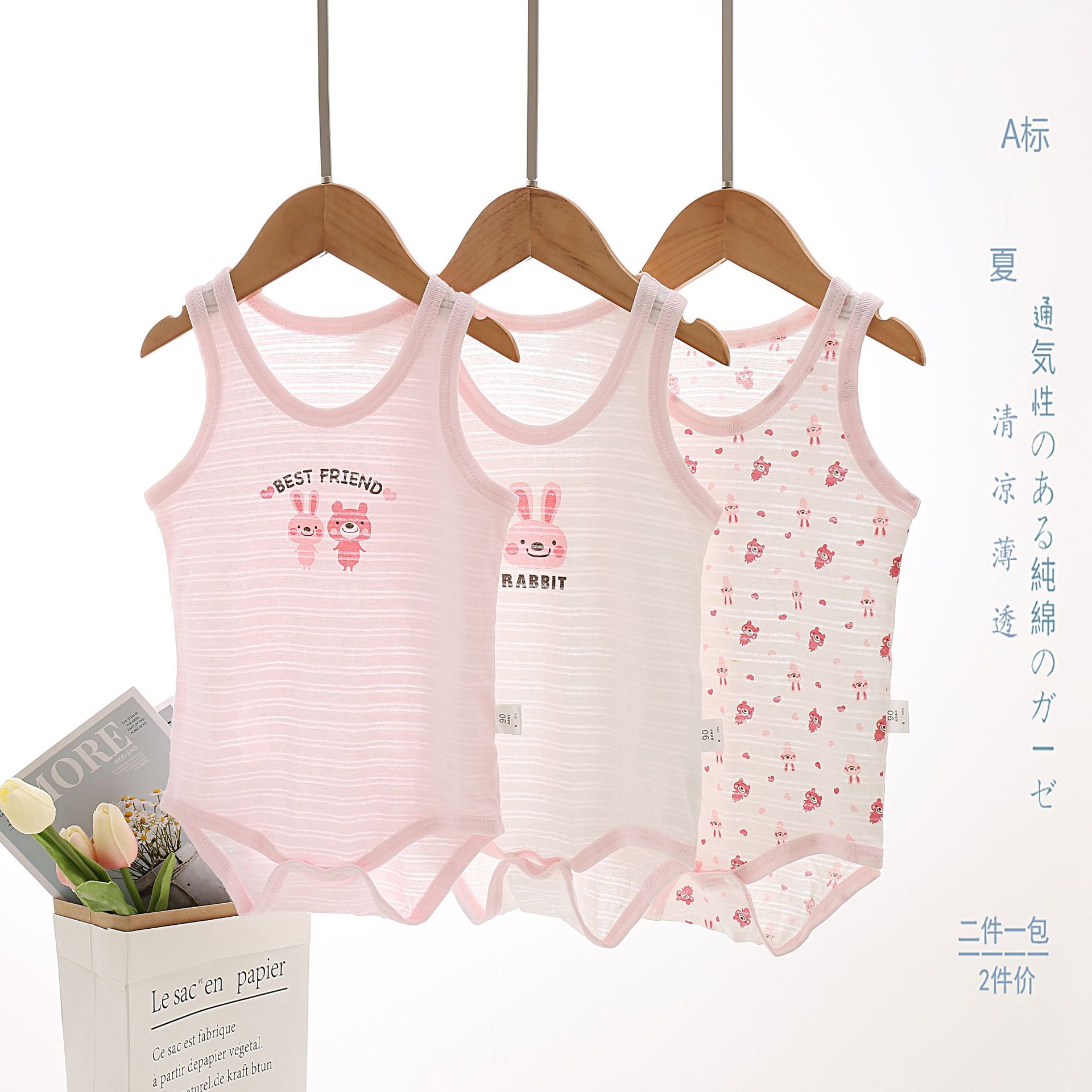 夏款3件组背心哈衣现货! 年年款竹节棉背心哈衣
