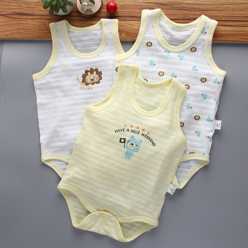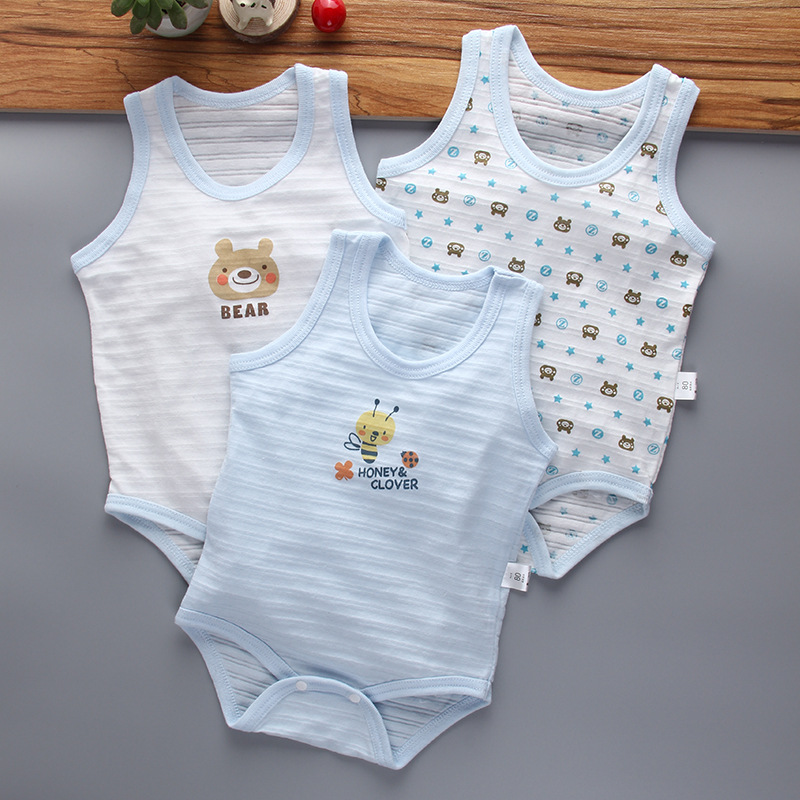Летняя тонкая хлопковая цельная детская треугольная сумка без рукавов с мультяшным принтом в японском стиле, Толстый Жилет для одежды
