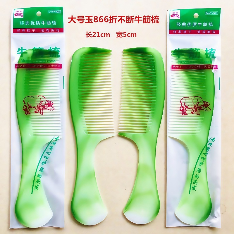 梳子是采用聚丙烯pp塑料精制制成,这种塑料像牛筋一样具有很好的柔韧性,:无毒无味,不易折断,不易摔坏,不易掉齿,使用寿命长,不伤发,很久用不坏,所以叫做牛筋梳。