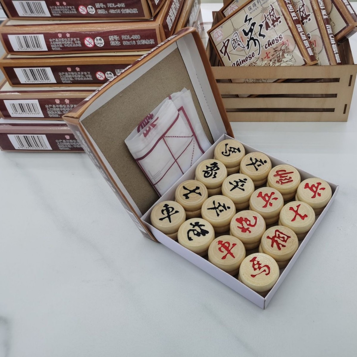 纸盒装木质中国象棋”。。。。小巧轻便