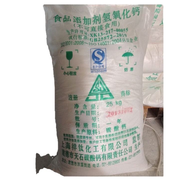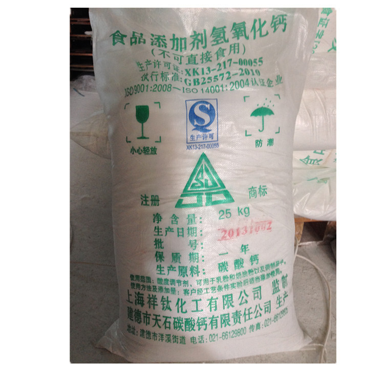 上海祥钛化工有限公司是一家集产供销为一体的大型化工企业,主要从事生产食品添加剂——氢氧化钙,碳酸钙等产品,三证及外检单齐全,符合食品标准GB25572-2010。本产品活性高,结构疏松,广泛用于医药,食品添加剂的合成,高技术生物材料HA的合成,饲料添加剂VC磷酸脂的合成,魔芋食品,素食品,啤酒饮料.钙剂合成及环烷酸钙,乳酸钙,柠檬酸钙的添加剂和水处理及其它有机化工的合成.