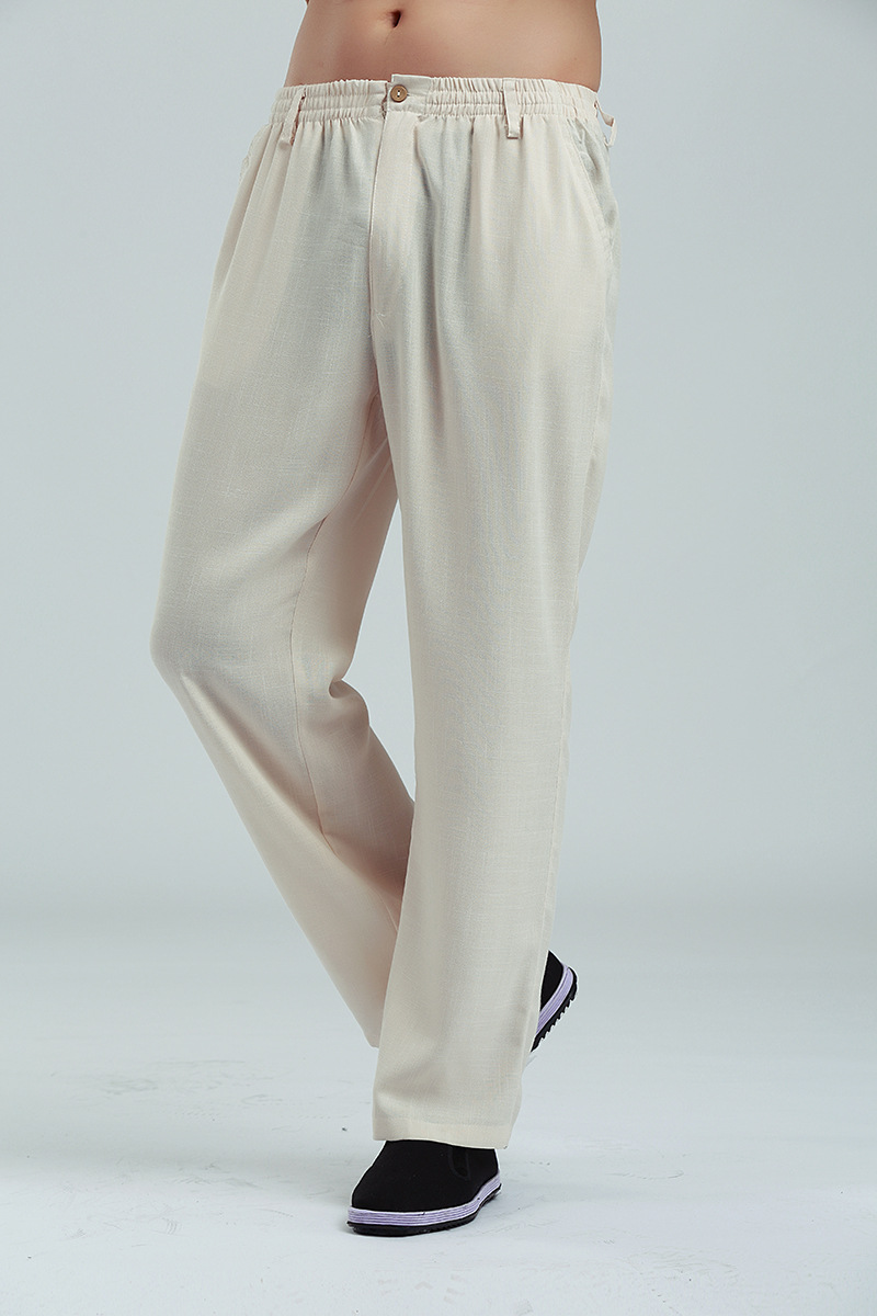 Костюм 2350-4 Тан из льна и хлопка среднего размера в китайском стиле, мужские брюки из хлопка и льна, длинные брюки/костюм для среднего и пожилого возраста