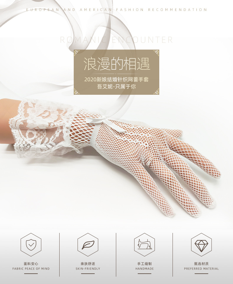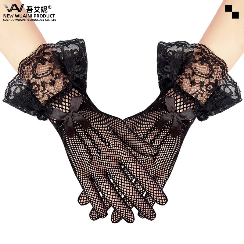 Европейские и американские свадебные перчатки, короткие, вязаные, с сетчатым кружевом, в стиле Лолита, аниме, прозрачные, сексуальные, для свадебного платья