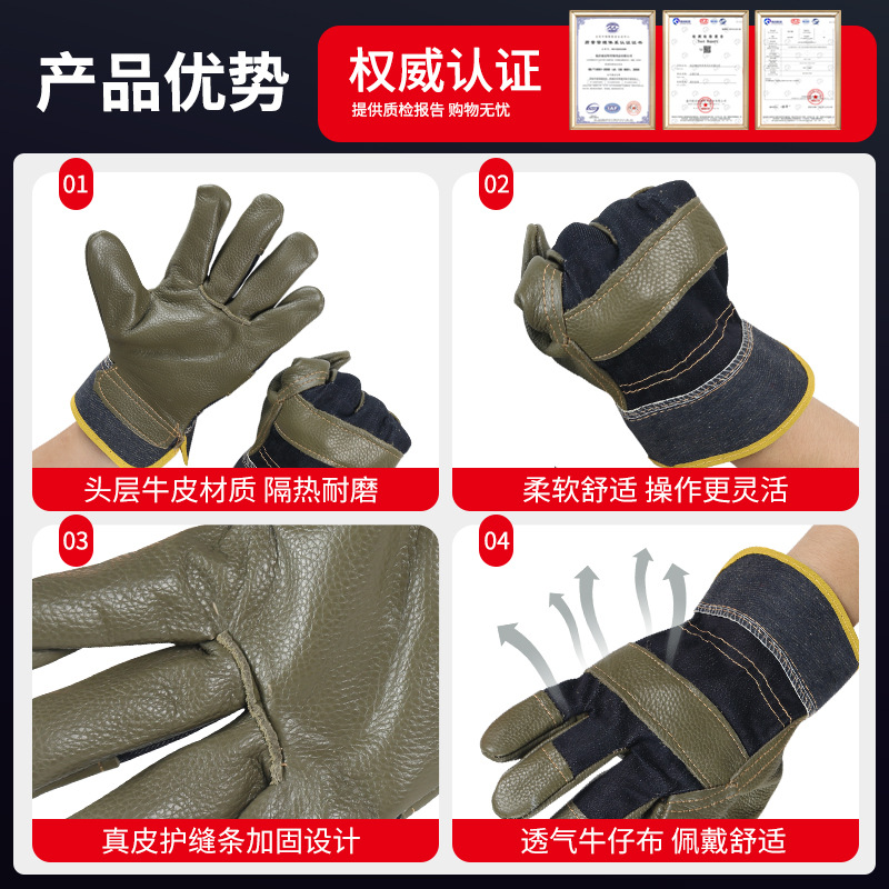 Сварочные перчатки Daquan Palm короткие производители оптом из темного слоя воловьей кожи износостойкие перчатки для защиты труда сварщика