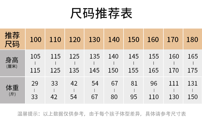 100cm; 110cm; 120cm; 130cm; 140cm; 150cm; 160cm; 170cm; 180cm