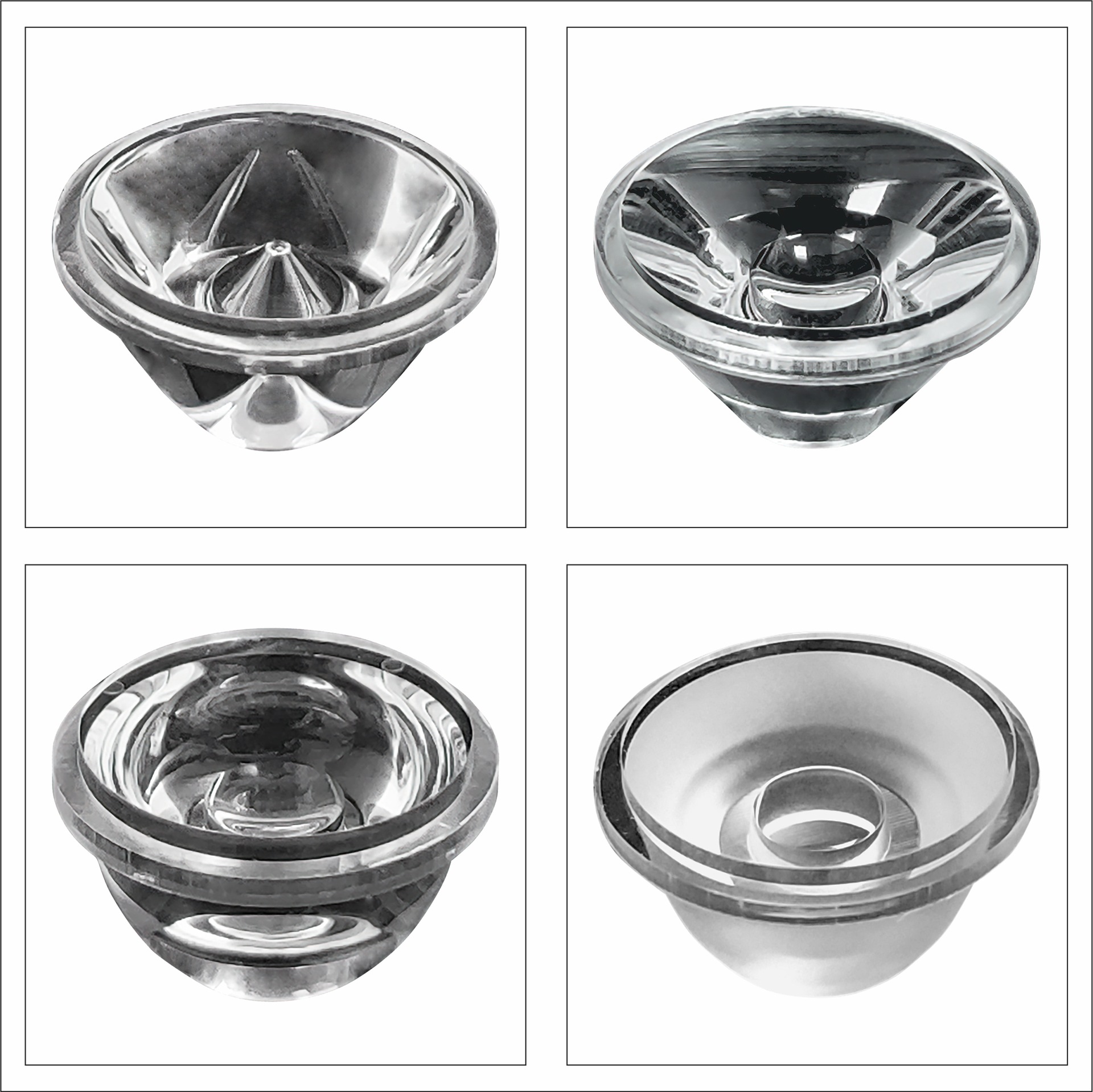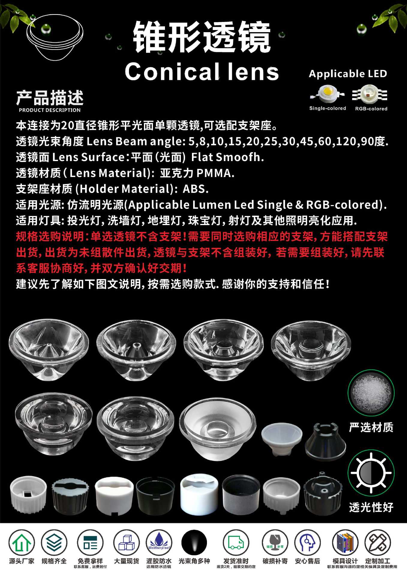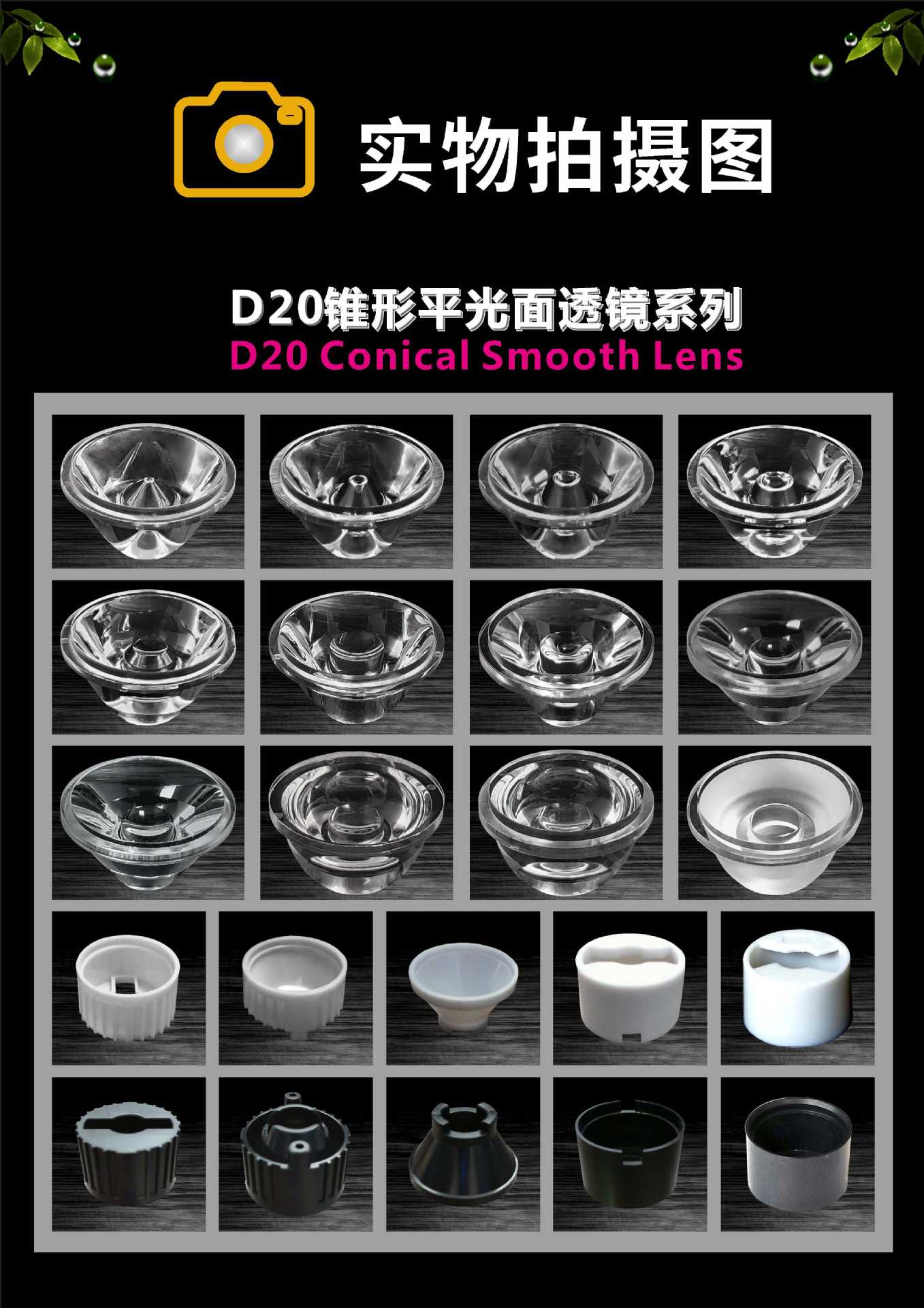 Коническая линза для светодиодов диаметром D20 с плоской поверхностью подходит для различных светодиодных светильников с имитацией высокой мощности и креплением на кронштейн.