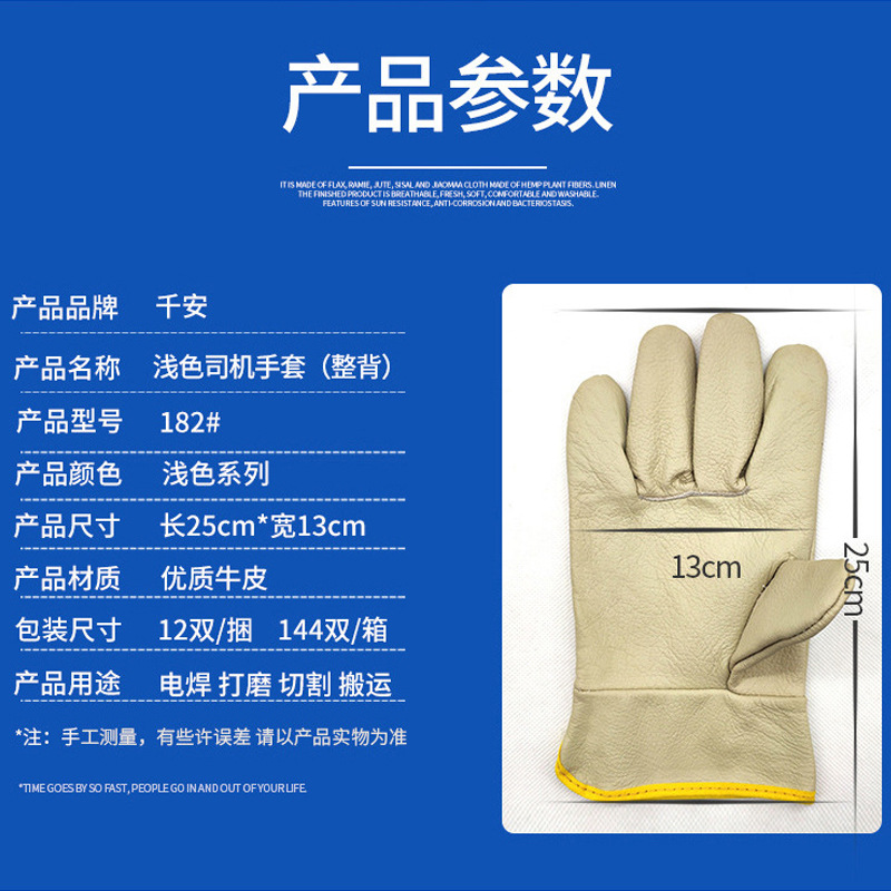 如果你对质量要求较高,建议你买华沂牌牛皮手套。第一、华沂牌牛皮手套都是柜皮做的(柜皮就是从国外成柜进来的,比国产皮结实很多)第二、三股线缝合,真正一付抵三付。大家知道皮手套很多都是开线的,皮子磨坏的很少。
