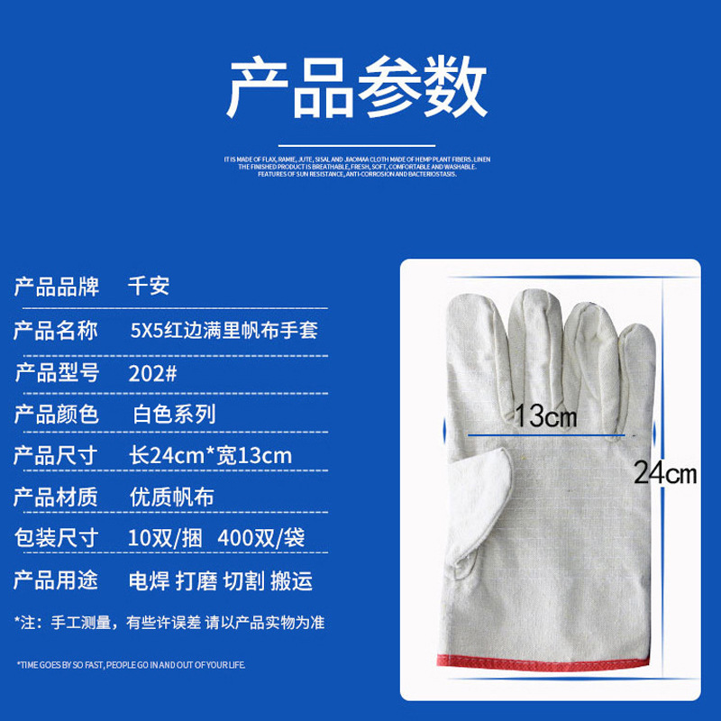 24-строчная белая броня, покрытая красной кромкой, рекламная модель; Устойчивые к истиранию холщовые перчатки с длинными пальцами; 24-строчная белая броня с белыми краями для компенсации потерь при продажах.; 12-нитка белая броне ткань полу подкладка; Белые тканевые однослойные холщовые перчатки; Половина подкладки из 6-ниточной пропилена.; Перчатки из хлопкового холста 5х6; Утолщение хлопка пятью пальцами и устойчивость к высоким температурам.; тканевые перчатки для обуви; Длинные 38cm холщовых перчаток.; Длинная 35cm утолщенная муфта для рук