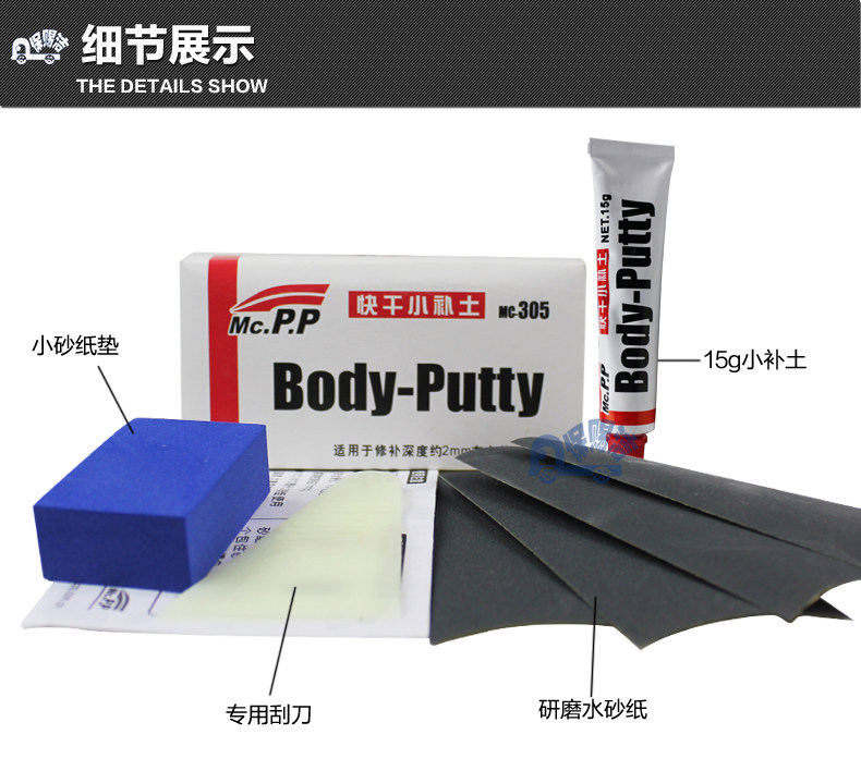 【包装内容】小补土、专用刮刀、研磨水沙纸
