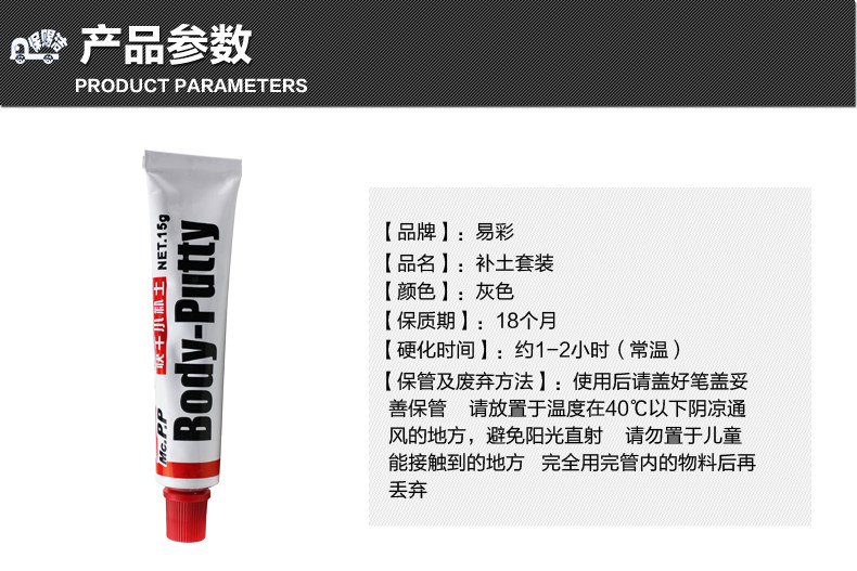 【用途】汽车补漆钱,用于填平烤漆面深度在2毫米以内的凹坑、深度刮痕或漆面剥落等。