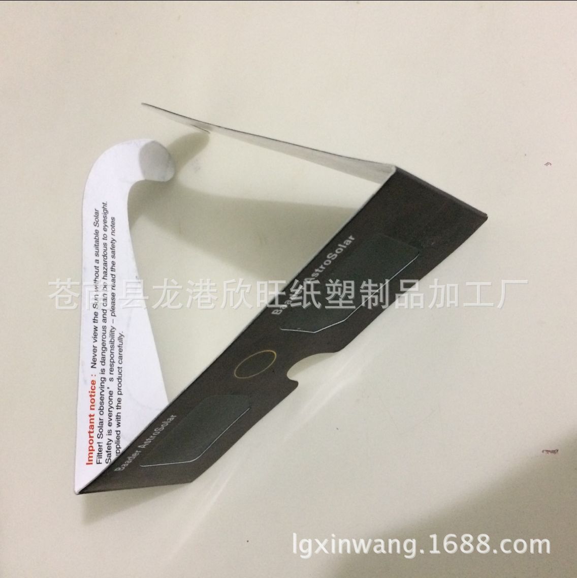 镜架:通常:250克白卡纸对表相当于500克 镜片:0.2mm进口PET过滤光片 16丝 0.16mm 常规:40.5*3.7cm