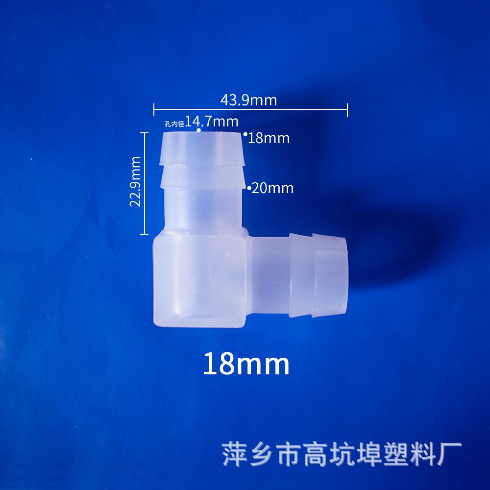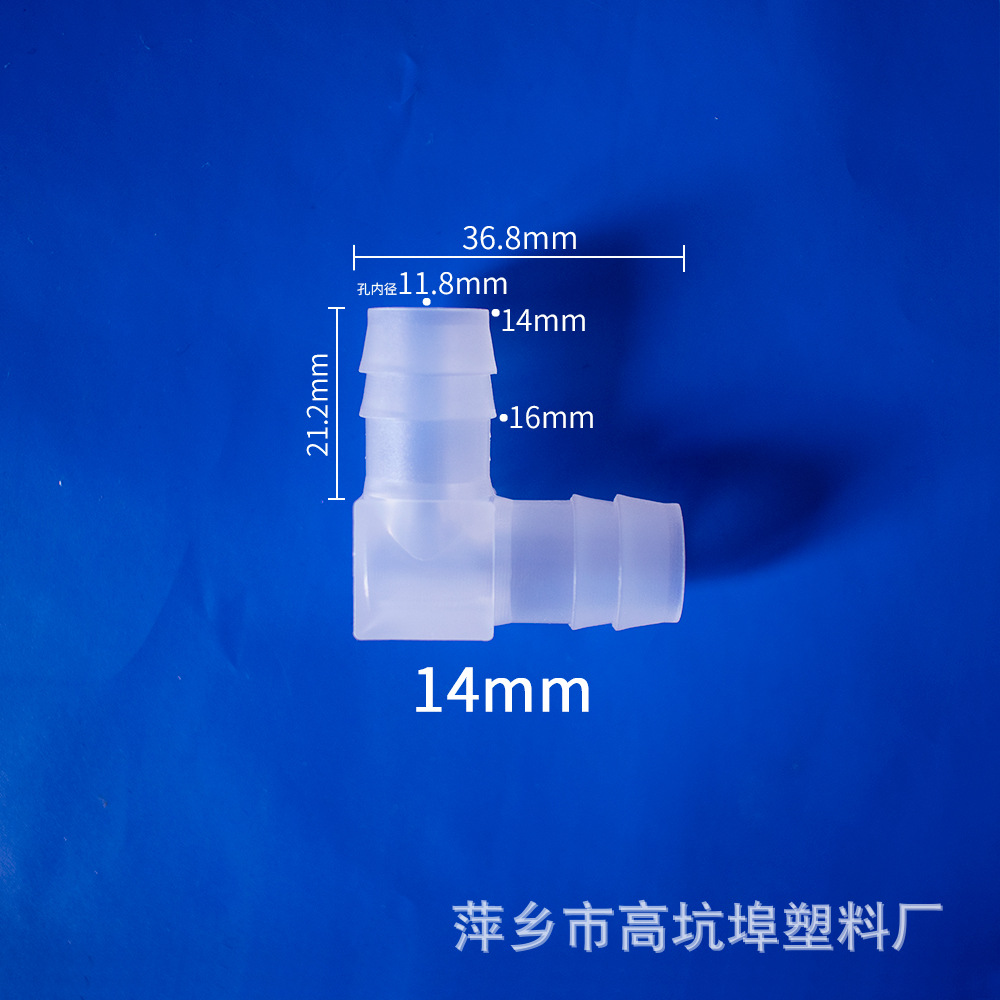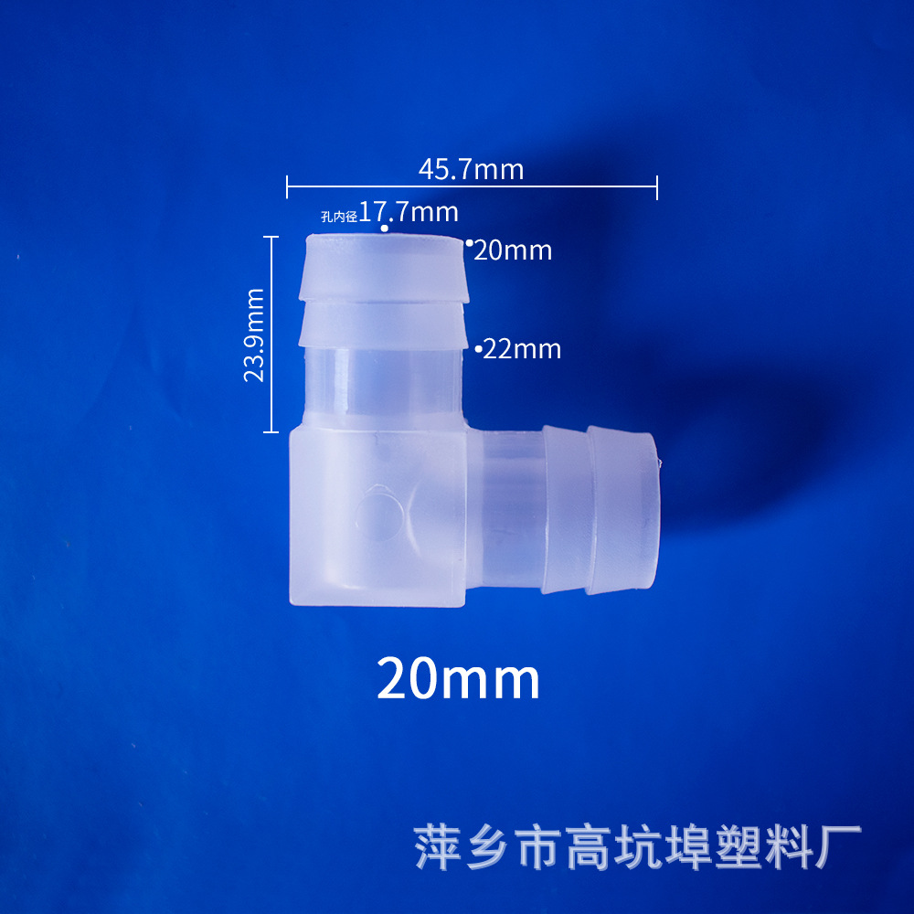 Оптовая продажа пластиковых фитингов из полипропилена для дропшиппинга: угловые соединители для шлангов 90 градусов, горизонтальные соединители с шипами.