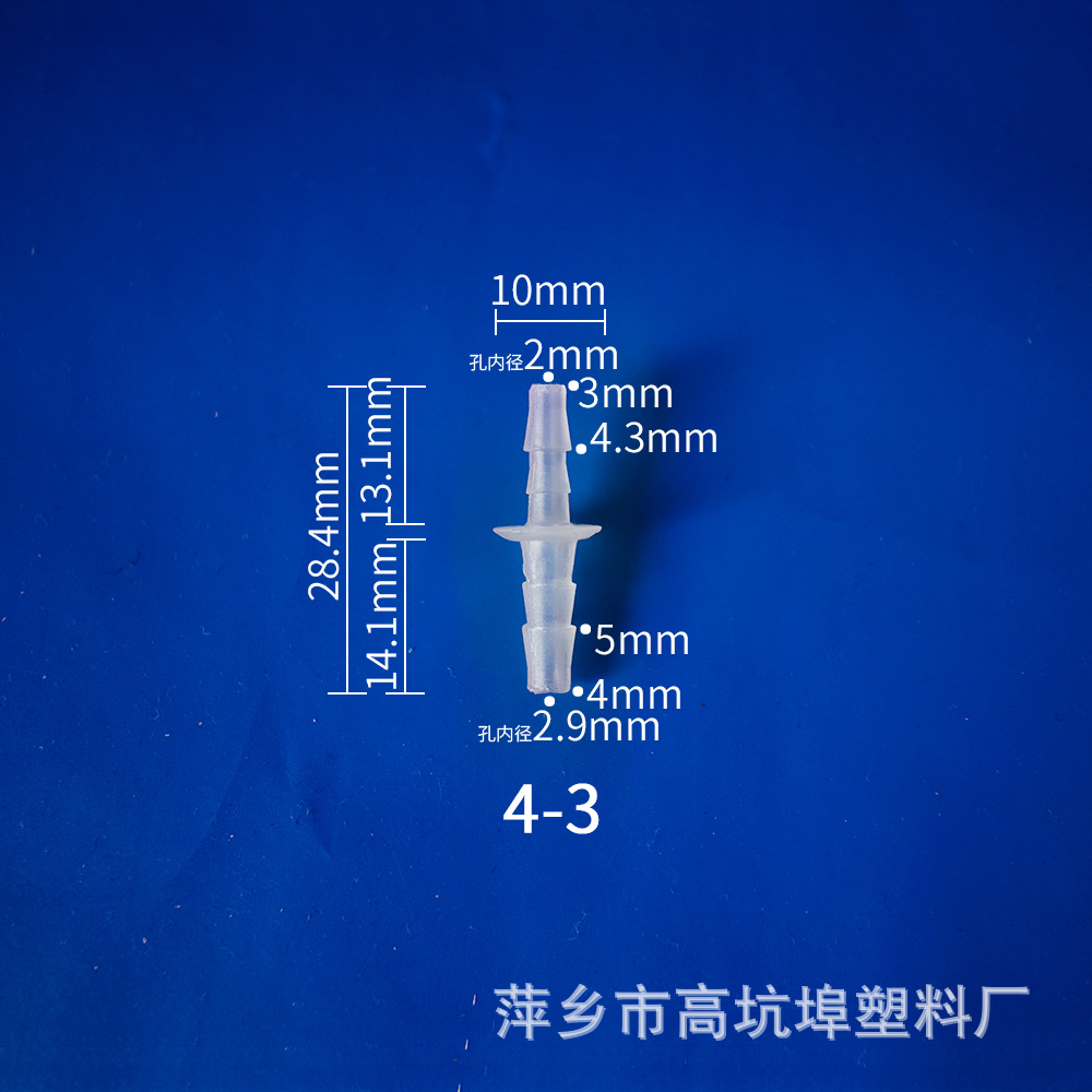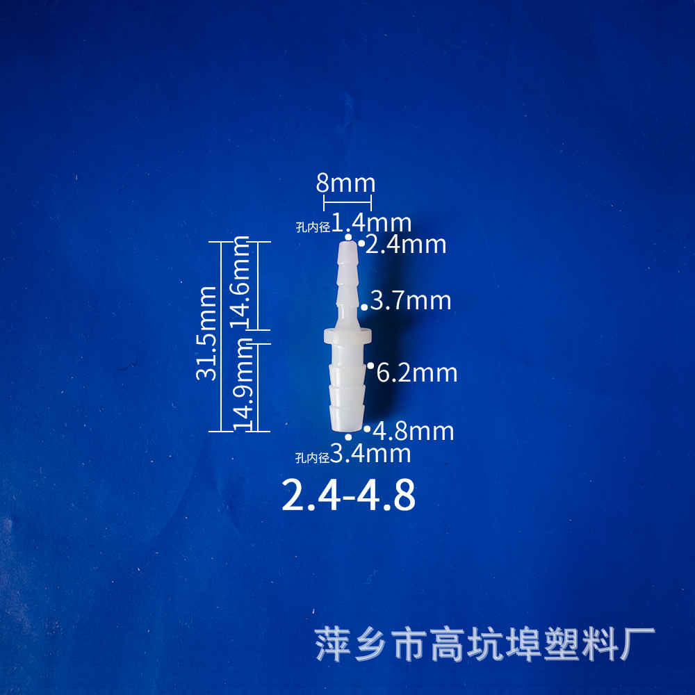 供各类塑料管接头,液体弹簧单向阀,气体单向阀:应用于制药,分析仪器,点胶设备,医疗仪器,精密机械,化学装置、包装机械、水处理及消毒设备、充气产品、引挚发动系统,呼吸麻醉设备、治疗台、培养箱、生物工程、循环水冷却等管路系统,水族等领域。规格有(1/16—3/4):直通式,角式,L型,T型三通,Y型三通,四通(十字、∏型)、六通等],F通,E通,4-20通分配器,开关调节阀,浴室用品,卫浴配件,喷灌设备,养殖阀二通阀,变径通,穿板接头,气动接头,鲁尔接头 直通接头 L型弯头 T型三通 Y型三通 多通接头 螺纹接头 堵头,其它塑胶配件。主要用于连接硅胶管,PU管,PVC管,特氟龙管,气动设备等。材质:PP,PE,尼龙,POM,ABS等。 耐压8-10公斤