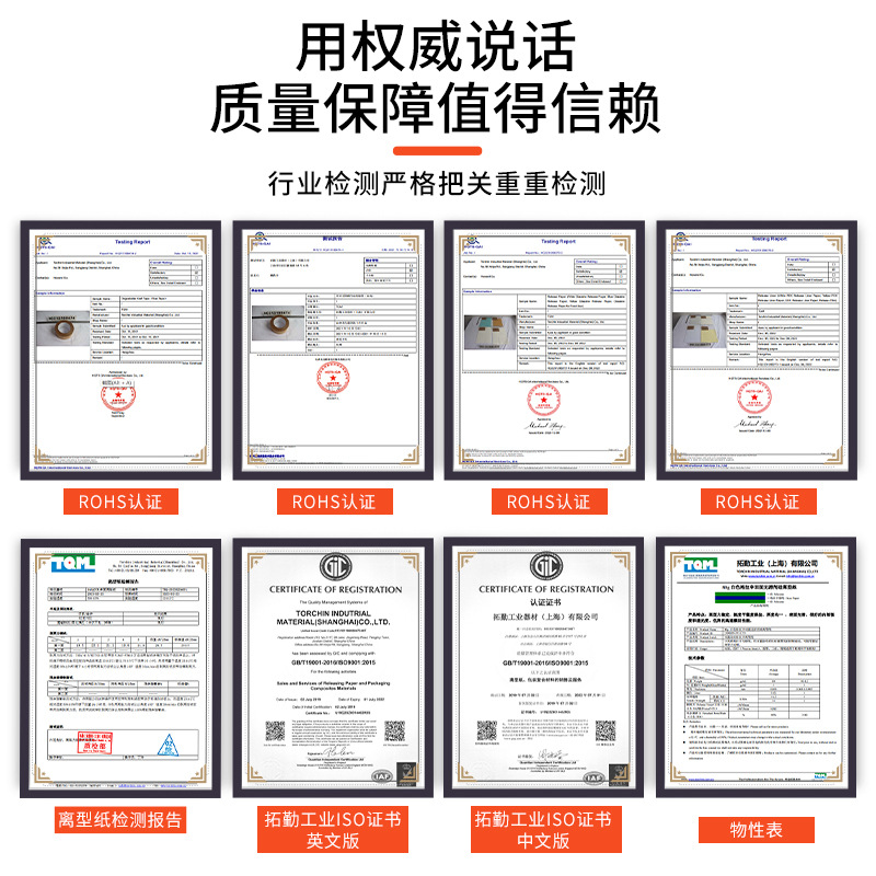 拓勤离型产品克重从35克到250克,产品颜色有白色、蓝色、棕色、黄色等,离型力从超轻剥离到超重剥离,单面离型双面离型皆有。广泛服务于胶带行业、标签行业、广告材料、电子模切以及医疗卫生行业等众多行业。