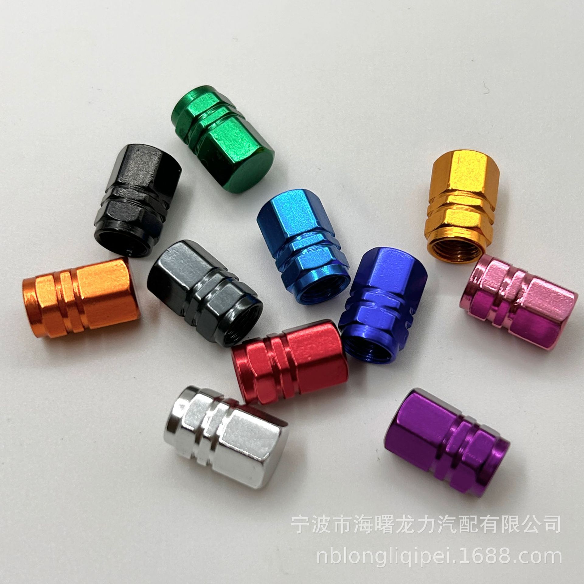 这款铝合金六角帽常备库存11色(金黄,银白,黑色,红色,蓝色,天蓝,绿色,橘黄色,枪灰色,紫色,粉色),产品都塞有防漏气橡皮内圈,产品现货充足,起订量100只起,本店气门帽种类较多,可混批,亲可用进货单自行购物。