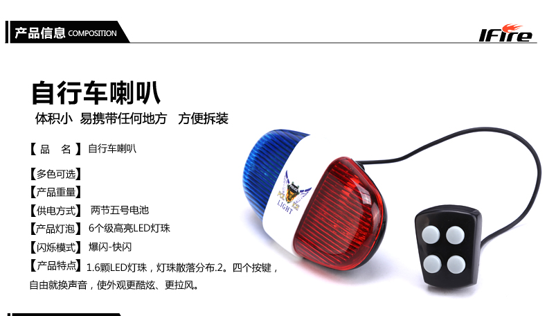 这是一款专为自行车和简易电动车设计的“电喇叭+前夜行灯”的多功能产品。生活防雨设计,可以在雨天室外使用,安装使用方便,功能又非常的实用。喜欢标新立异的您,又怎能错过这么好的产品呢!