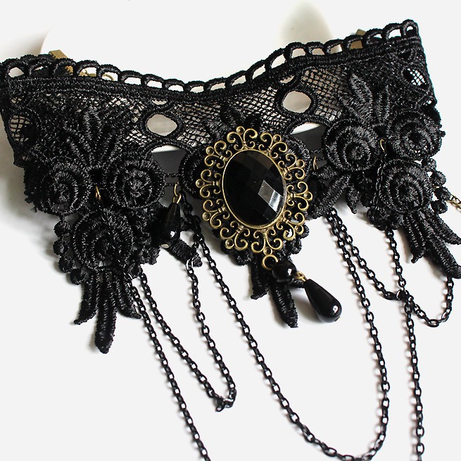 Вечеринка Queen Gem Широкое ожерелье Черное кружевное ожерелье Панк-платье Аксессуары Поддельный воротник