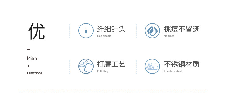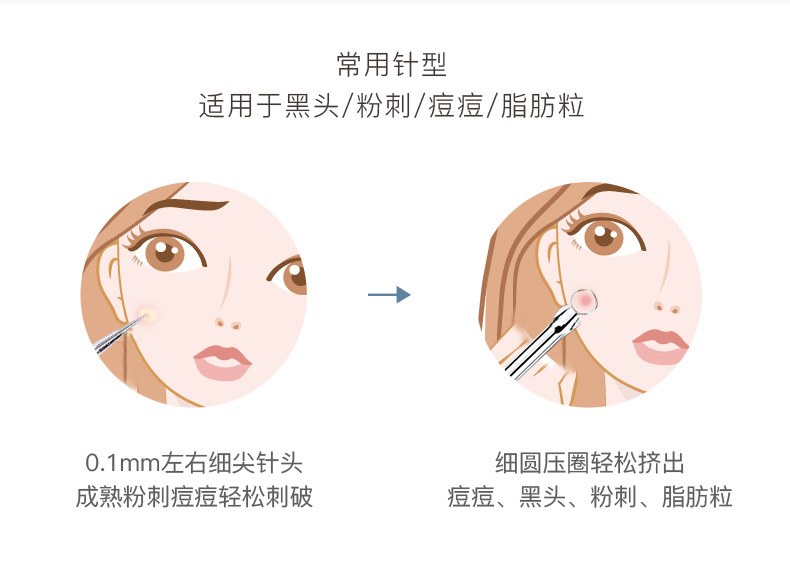 Длинные и короткие две иглы E097; Одинарная игла B0730; Одинарная игла B0731; Зажим для бровей + игла комбинированная A0103; Игла от прыщей с упаковкой для хранения B0742; SY505 зажим от прыщей с изогнутым ртом; SY506 зажим для прыщей под углом; SY507 зажим от прыщей с прямым ртом; Длинные и короткие две иглы SY510; Одинарная игла B0754; Серебряная одинарная игла B0708; Золотая одинарная игла B0710; Позолоченная одинарная игла E300; Алмазная одинарная игла B0768 (розовая); Алмазная одинарная игла B0768 (синяя)