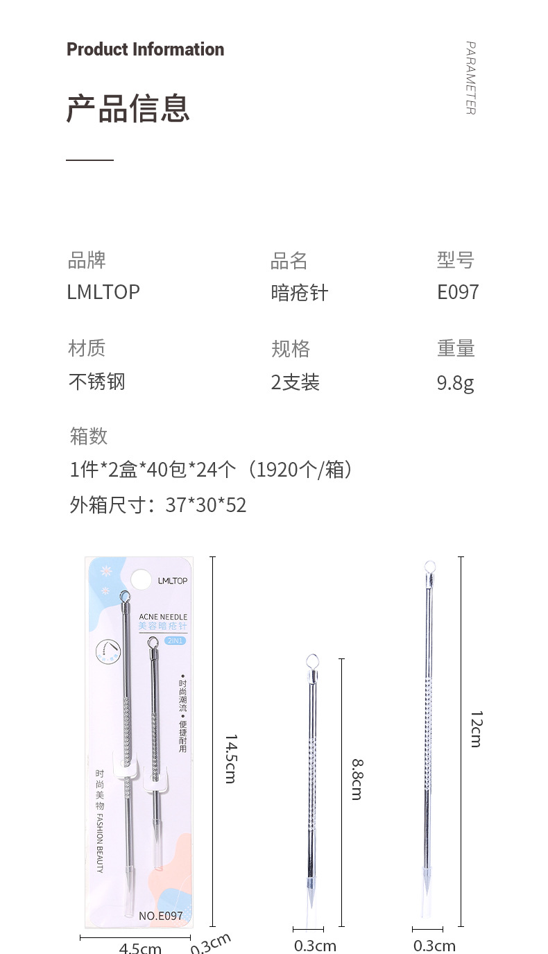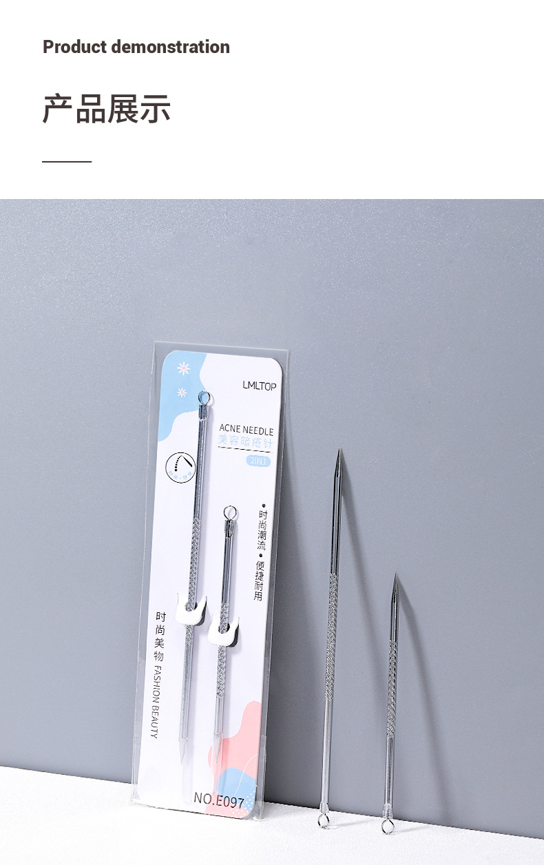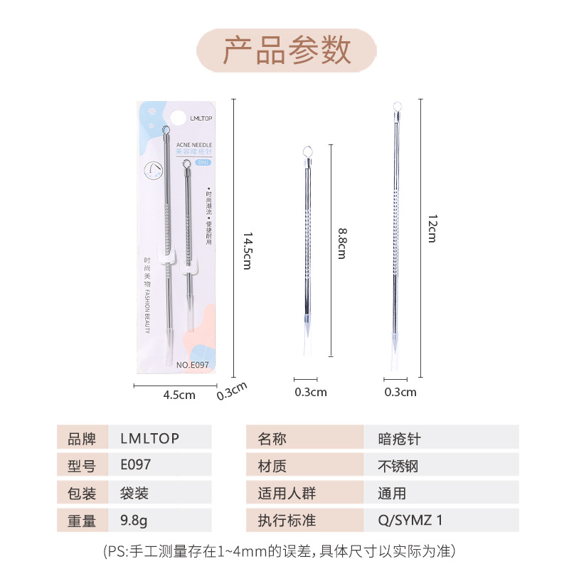 Набор игл для удаления акне из нержавеющей стали LMLTOP, двусторонний инструмент двойного назначения для удаления черных точек и прыщей E097