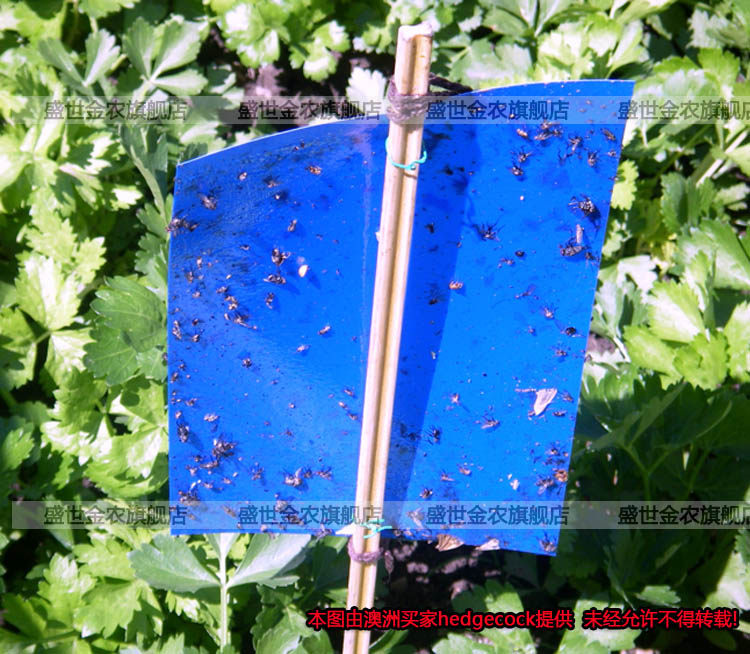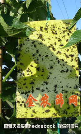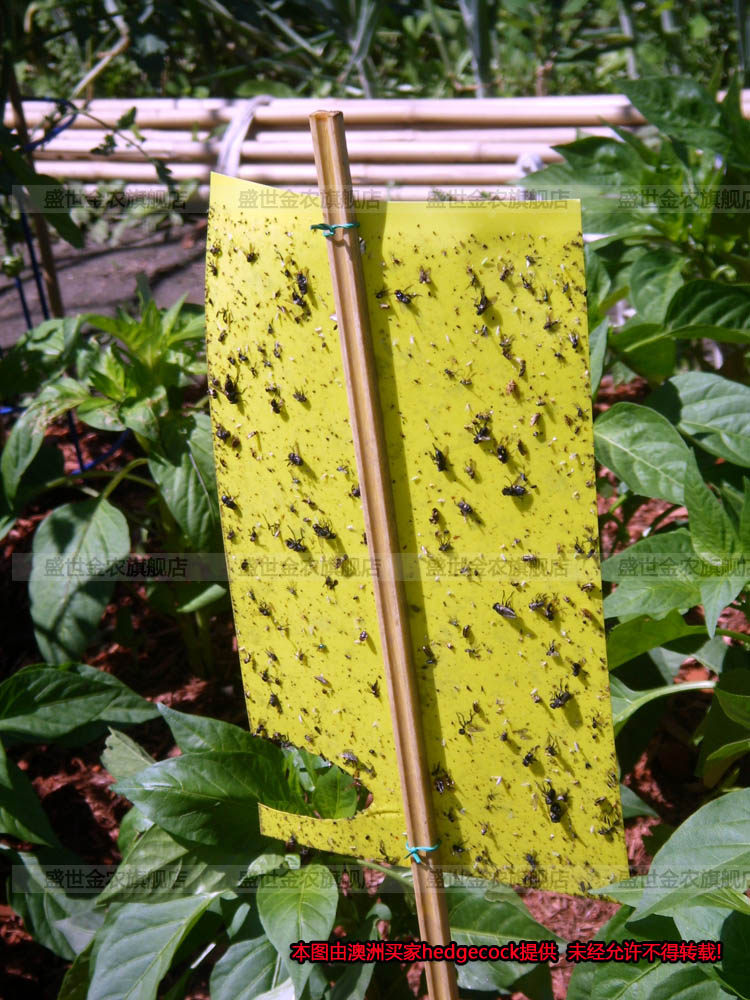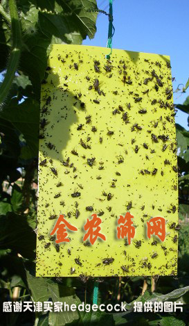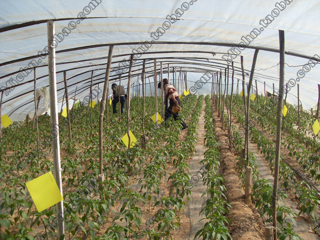 2.用于低矮作物时,悬挂高度以黄板下端与作物顶部平齐或略高为宜,悬挂方向以板面朝东西方向为宜;