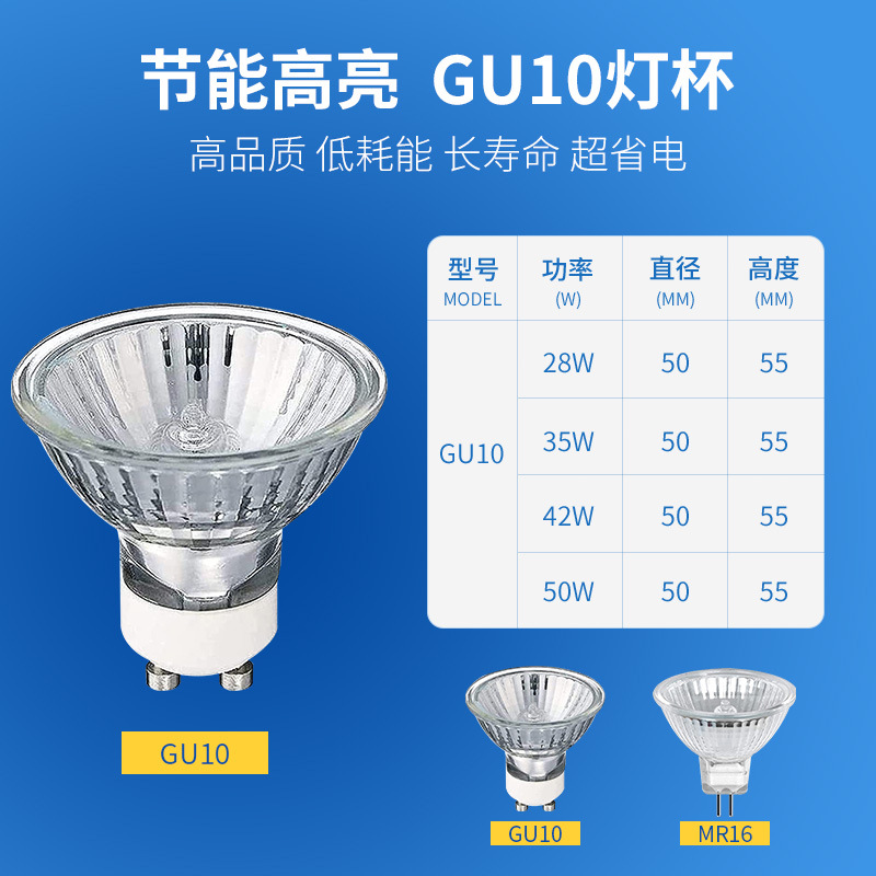 Трансграничные поставки галогенных ламп GU10 35W/50W для прожекторов, трековых светильников, потолочных светильников, диммируемых кварцевых ламп