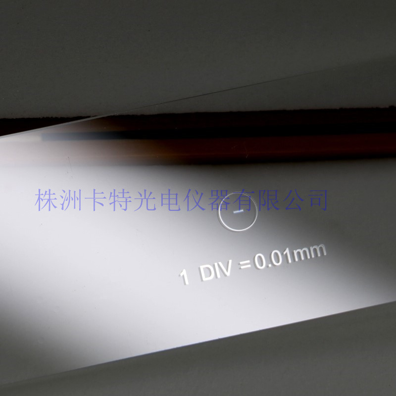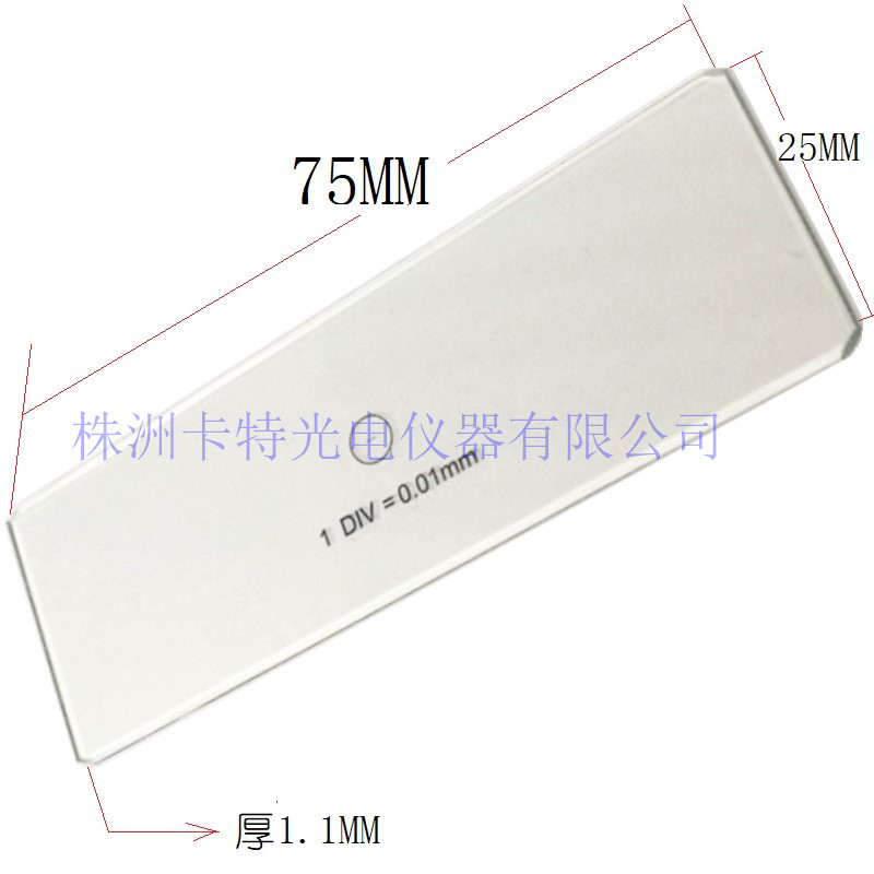 CAT901 C1的测微尺分划板,做工精美刻度清晰。尺寸为75mmX25mmX1mm,尺度总长为1mm,分为100等分,每一分度值为0.01mm。刻度线外有一直径为3mm,线粗为0.1mm的圆,以便调焦时寻找线条。主要配合电子目镜、显微镜相机和成像软件使用对显微拍摄物品进行测量。每一片都单独配备PP+EVA双层减震海绵的白盒包装,高端大气上档次。