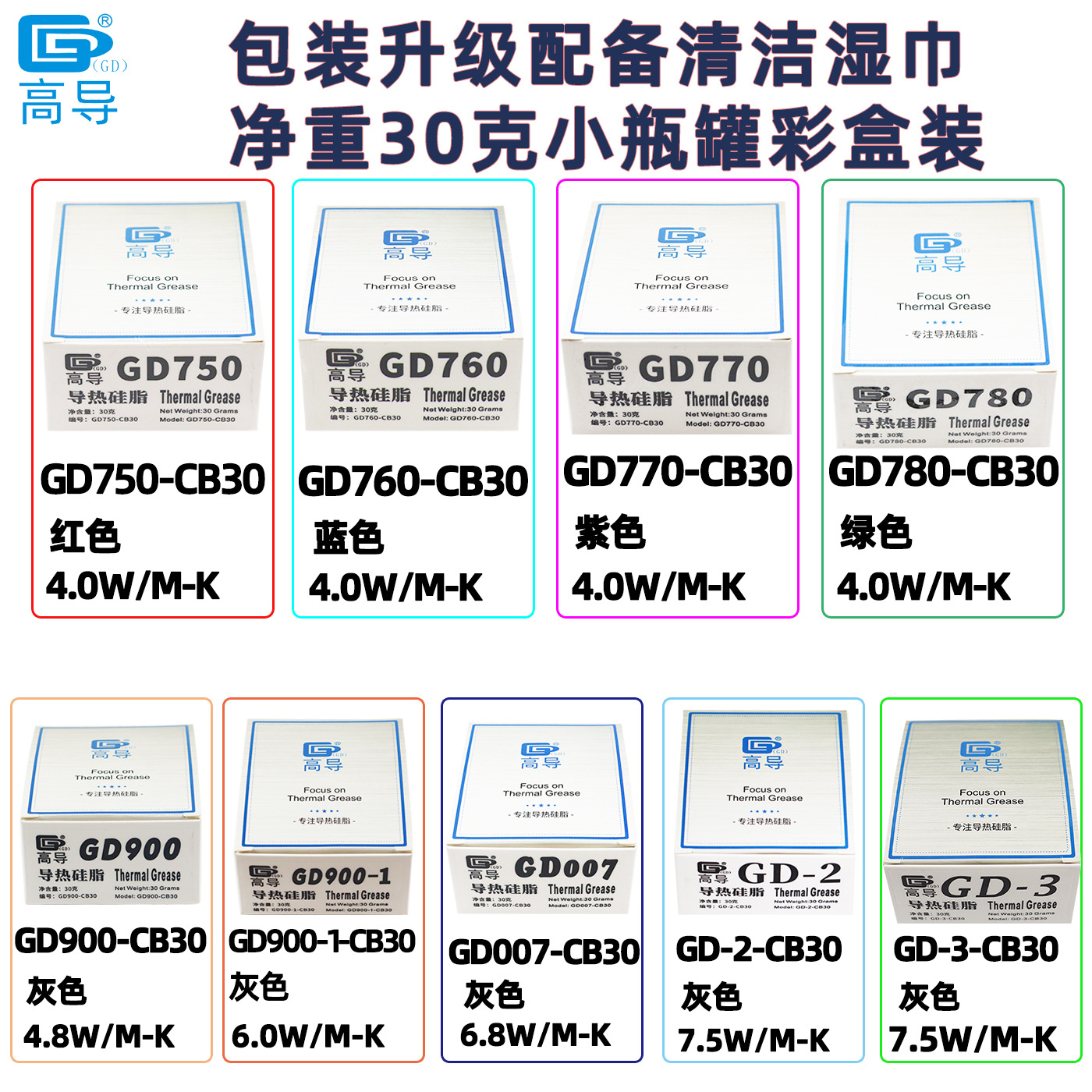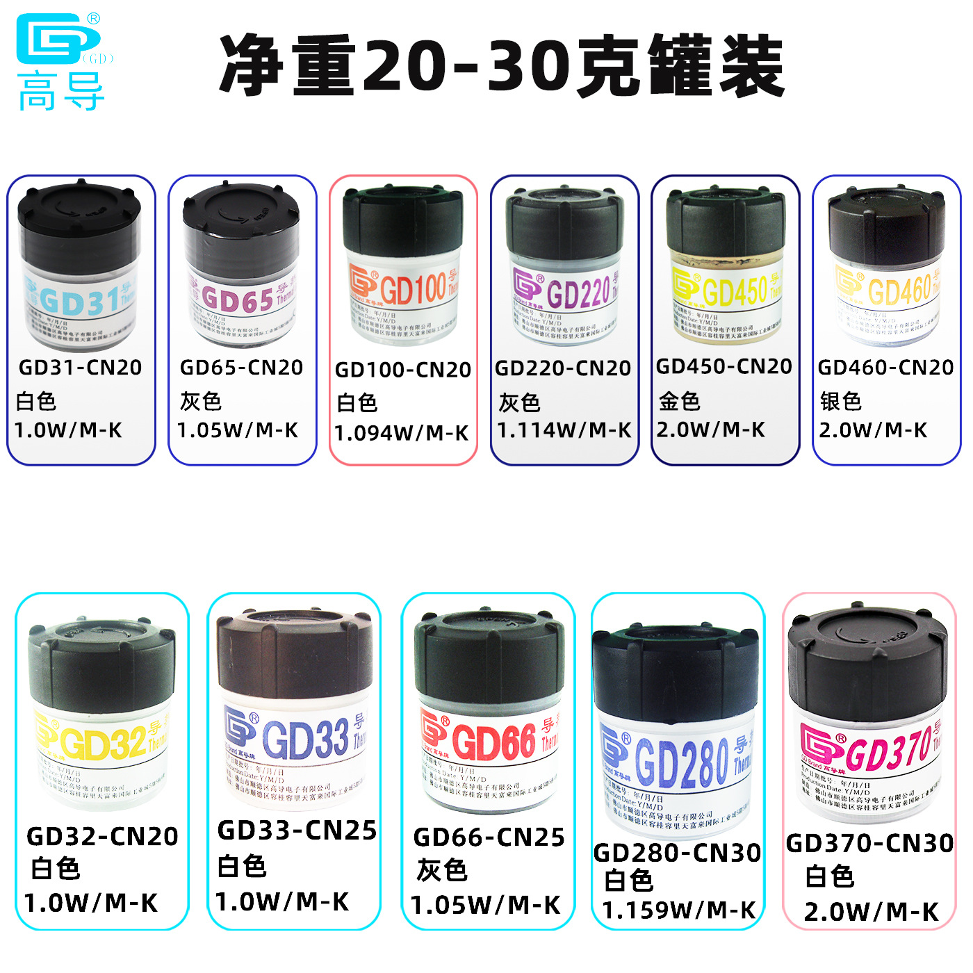 GD31-CN20 Белый 1,0 Вт/М-К Вес нетто 20 г, маленькая банка; GD32-CN20 Белый 1,0 Вт/M-K Вес нетто, маленькая банка 20 г; GD33-CN25 Белый 1,0 Вт/M-K Вес нетто, маленькая банка 25 г; GD65-CN20 Серый 1,05 Вт/М-К Вес нетто 20 г, маленькая банка; GD66-CN25 серый 1,05 Вт/М-К вес нетто 25 г маленькая банка; GD100-CN20 Белый 1,094 Вт/М-К Вес нетто 20 г, маленькая банка; GD220-CN20 серый 1,114 Вт/М-К вес нетто 20 г маленькая банка; GD280-CN30 Белый 1,159 Вт/М-К Вес нетто 30 г, маленькая банка; GD370-CN30 Белый 2,0 Вт/M-K Вес нетто, маленькая банка 30 г; GD380-CN30 серый 2,2 Вт/M-K вес нетто 30 г маленькая банка; GD450-CN20 золото 2,0 Вт/M-K вес нетто 20 г маленькая банка; GD460-CN20 серебристый 2,0 Вт/M-K вес нетто 20 г маленькая банка; GD560-CN30 белый 3.0 Вт/М-К, чистый вес 30 г, маленькая банка; GD600-CN30 серый 3,2 Вт/M-K вес нетто 30 г маленькая банка; GD750-CN30 красный 4,0 Вт/M-K вес нетто 30 г маленькая банка; GD750-CB30 красный 4,0 Вт/M-K вес нетто 30 г маленькая банка в цветной коробке; GD760-CN30 синий 4,0 Вт/M-K вес нетто 30 г маленькая банка; GD760-CB30 синий 4,0 Вт/M-K вес нетто 30 г маленькая коробка для банок; GD770-CN30 фиолетовый 4,0 Вт/M-K вес нетто 30 г маленькая банка; GD770-CB30 фиолетовый 4,0 Вт/M-K вес нетто 30 г маленькая банка в цветной коробке; GD780-CN30 зеленый 4,0 Вт/M-K вес нетто 30 г маленькая банка; GD780-CB30 зеленый, 4,0 Вт/M-K, вес нетто 30 г, маленькая банка в цветной коробке; GD900-CN30 серый 4,8 Вт/M-K вес нетто 30 г маленькая банка; GD900-CB30 серый 4,8 Вт/M-K вес нетто 30 г маленькая банка в цветной коробке; GD900-1-CN30 серый 6,0 Вт/M-K вес нетто 30 г маленькая банка; GD900-1-CB30 серый 6,0 Вт/M-K вес нетто 30 г маленькая банка в цветной коробке; GD007-CN30 серый 6,8 Вт/M-K вес нетто 30 г маленькая банка; GD007-CB30 Серый 6,8 Вт/M-K Вес нетто 30 г, маленькая банка в цветной коробке; GD-2-CN30 серый 7,5 Вт/M-K вес нетто 30 г маленькая банка; GD-2-CB30 серый 7,5 Вт/M-K вес нетто 30 г маленькая банка в цветной коробке; GD-3-CN30 Серый 7,5 Вт/М-К Вес нетто 30 г, маленькая банка; GD-3-CB30 серый 7,5 Вт/М-К вес нетто 30 г маленькая банка в цветной коробке