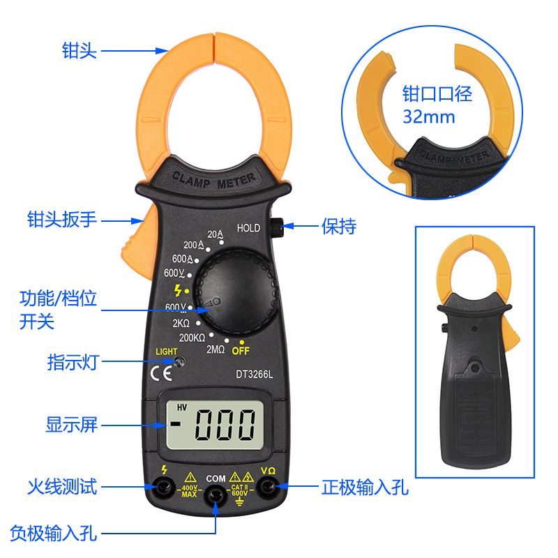 Амперметр-зажим DT3266L токовый зажим против ожогов с идентификацией FireWire Weihua Electronics