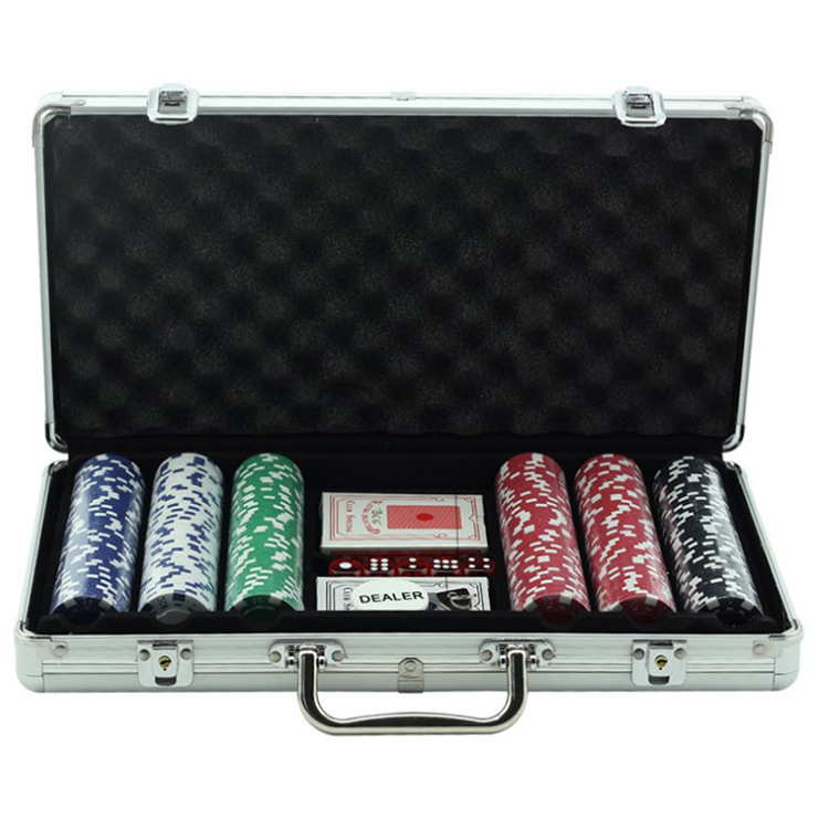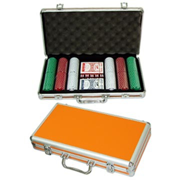产品材质:该产品采用银色铝合金框架、面料为ABS仿铝面料、常规五金。可根据要求定做:PU/ABS、密度板、真铝片、透明亚克力,五金塑料配件等等,内可配置300片筹码,2副扑克,5颗骰子。