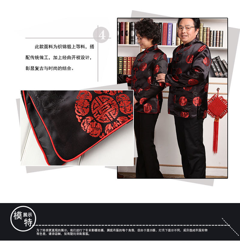 Осеннее платье для среднего и пожилого возраста 2383-3 пары Платье Тан для мужчин и женщин с длинным рукавом на день рождения в китайском стиле для пожилых людей Тонкая куртка с хлопковой подкладкой