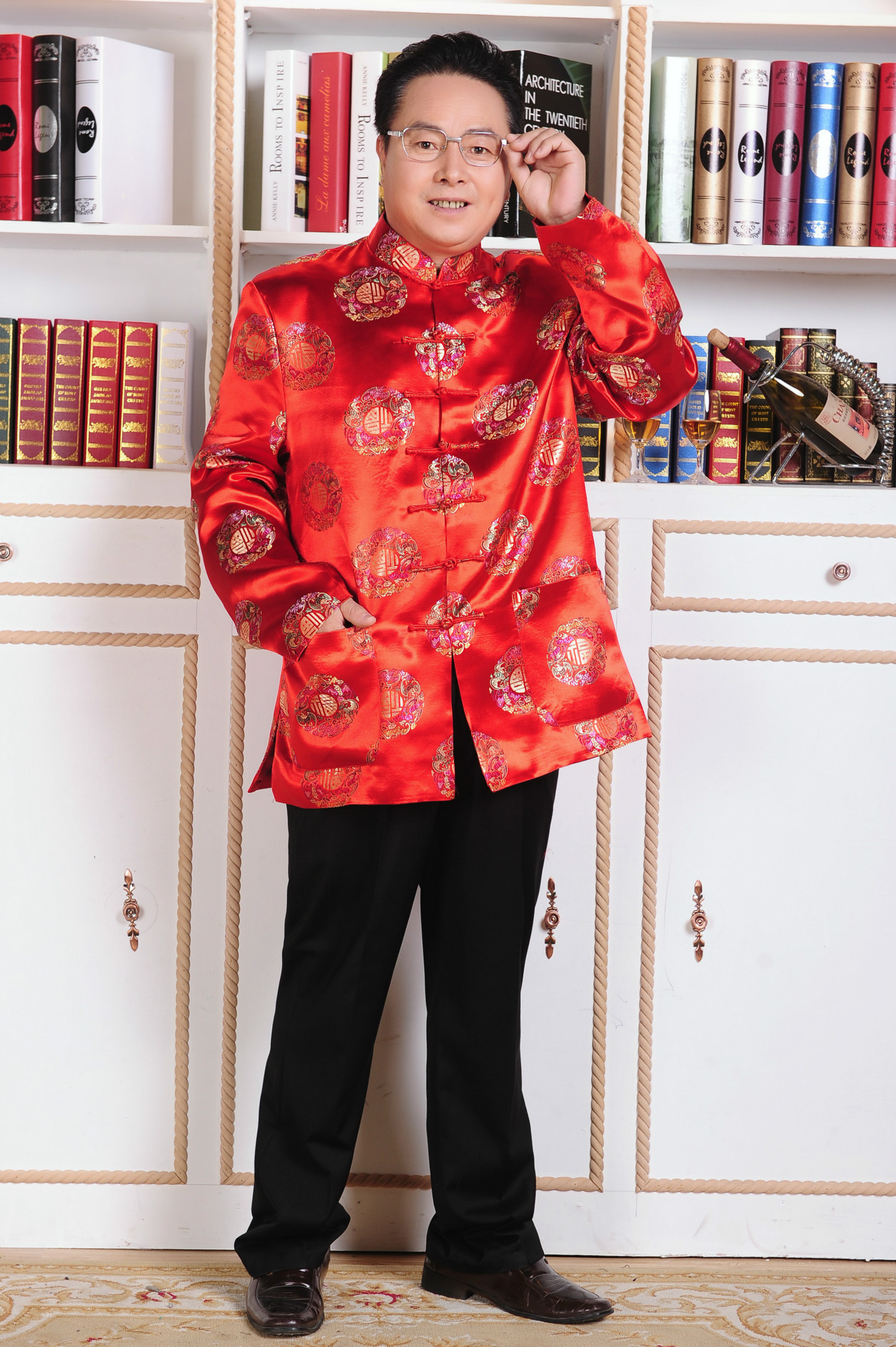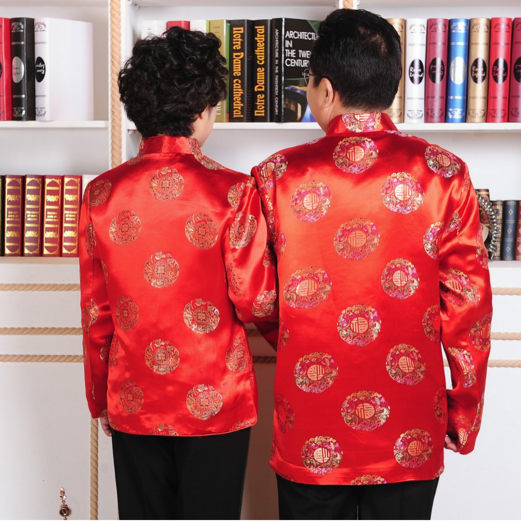 Осеннее платье 2383-1 Платье для пары среднего и пожилого возраста Зимнее пальто с хлопковой подкладкой Мужское и женское платье с длинным рукавом на день рождения Костюм Тан для китайских пожилых людей