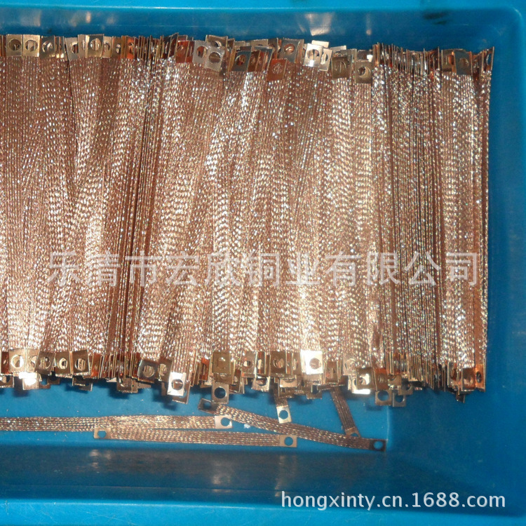 铜线软连接运用高、低压电器,真空电器,矿用开关及汽车,机车及相关产品作软连接用。采用祼铜线或镀锡铜线编织,用冷压方法制成,可根据用户要求镀锡、银。