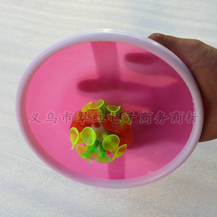 吸盘球由色彩鲜艳、柔软的自然吸咀组成,能吸附在光滑的物体表面,如桌面及镜面上。玩耍时不会划伤手脚,可提高手感及反应能力。吸盘球可一人或多人同时玩耍。单人玩时先把球抛向空中,待球落下时用球板接住;两人以上玩时,一人把球抛向另一方,对方用球板接住后再抛回。吸盘球既好玩,又可锻炼身体。
