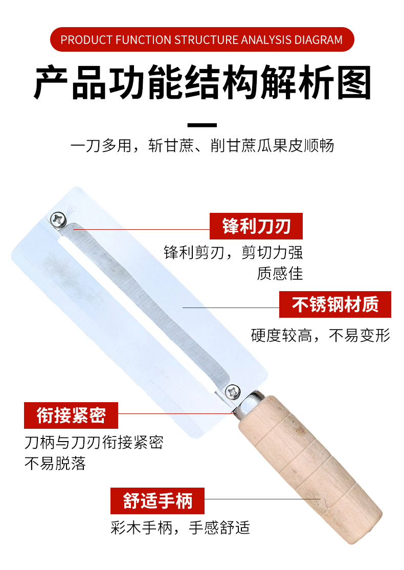 Нож для очистки сахарного тростника Zhizhong 2025 из углеродистой стали, специальный инструмент для очистки ананасов для фруктовых магазинов, различные модели, устойчивый к коррозии