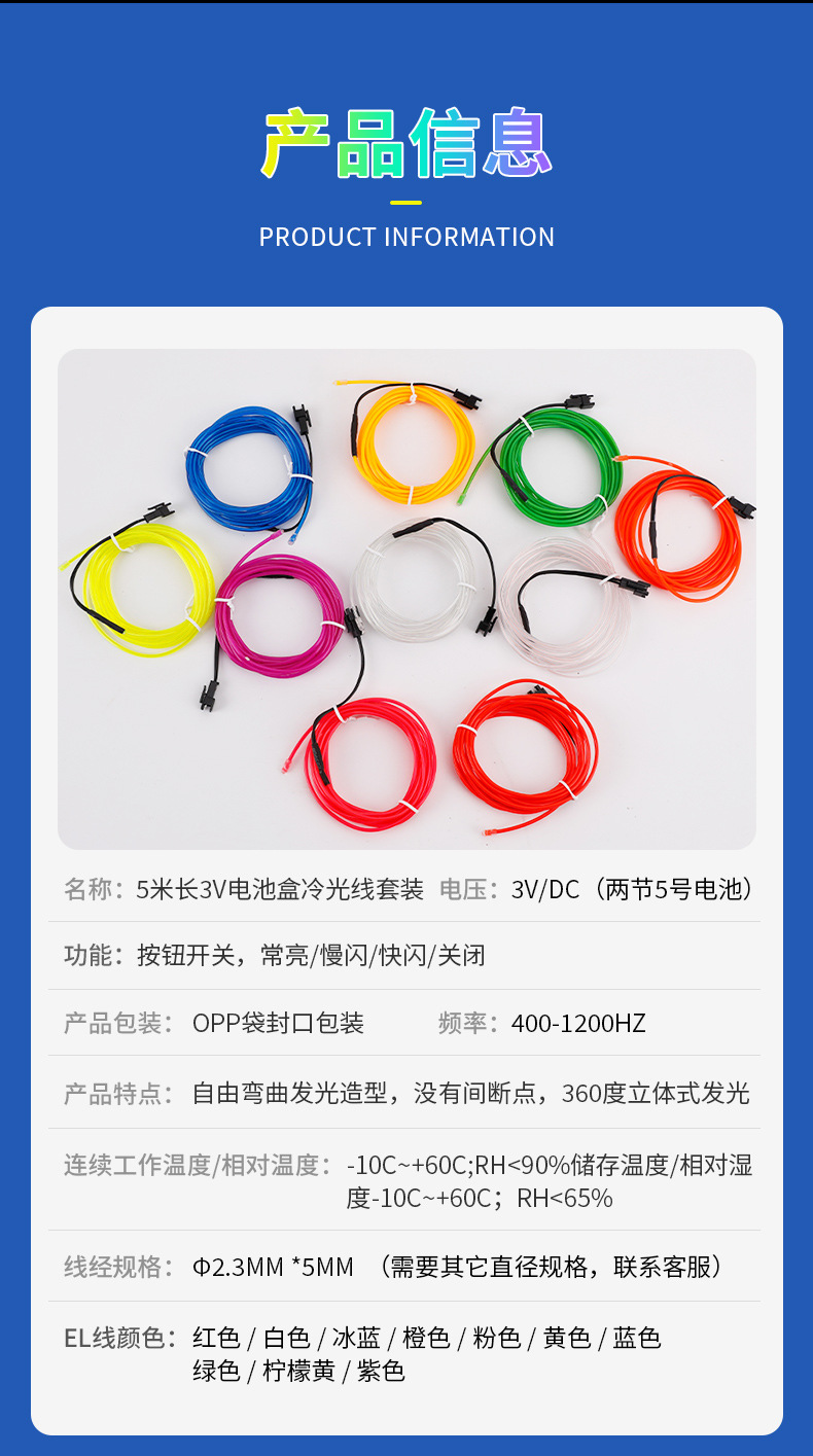 5 м 3 В батарейный отсек костюм подсветка EL холодный свет флуоресцентная танцевальная одежда Автомобильная атмосфера легкая одежда светящийся свет может быть DIY