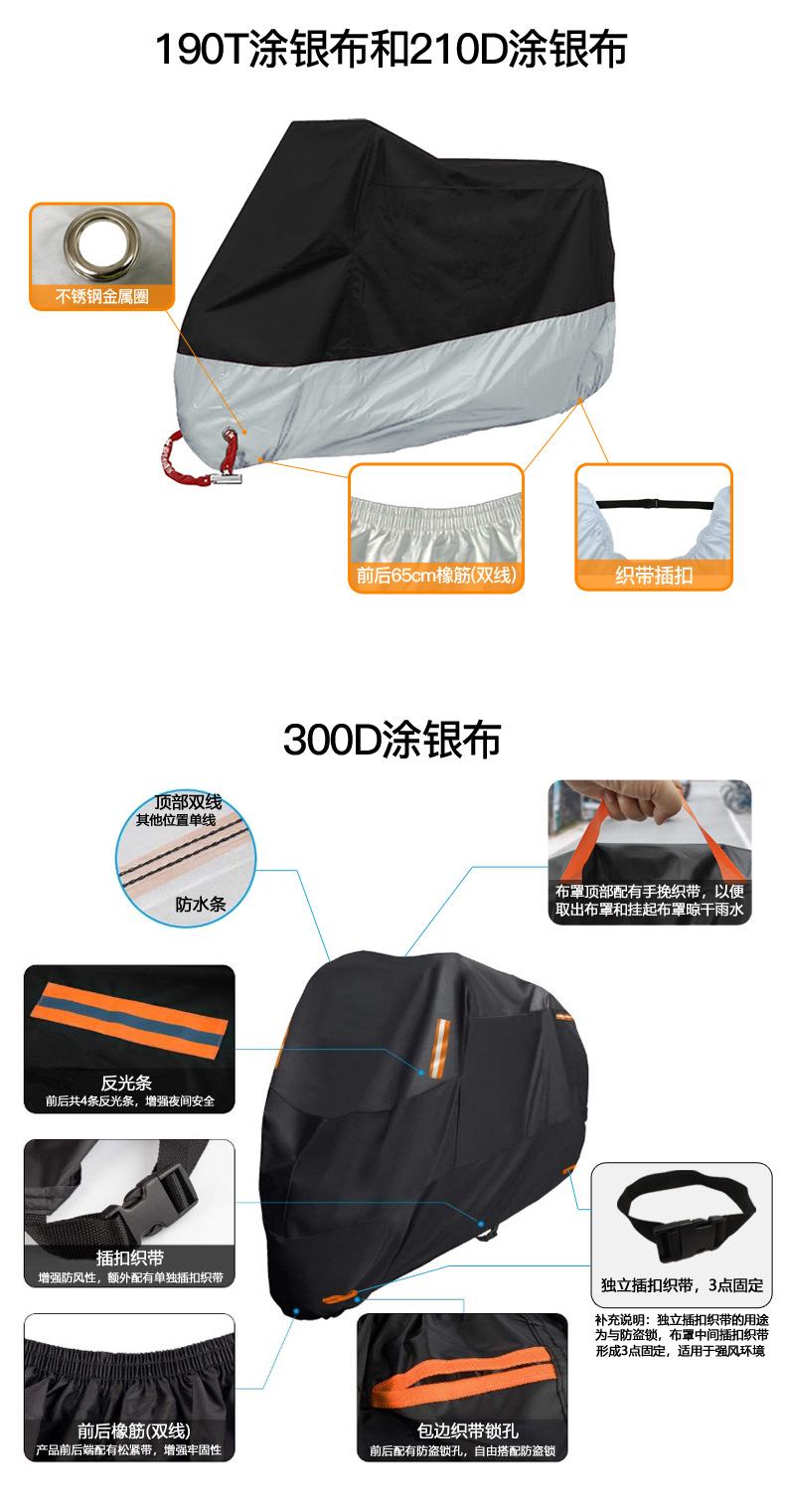 Чехол для мотоцикла на складе оптом Amazon взрывы 210d Посеребренная Автомобильная одежда солнцезащитный крем, защита от дождя и пыли