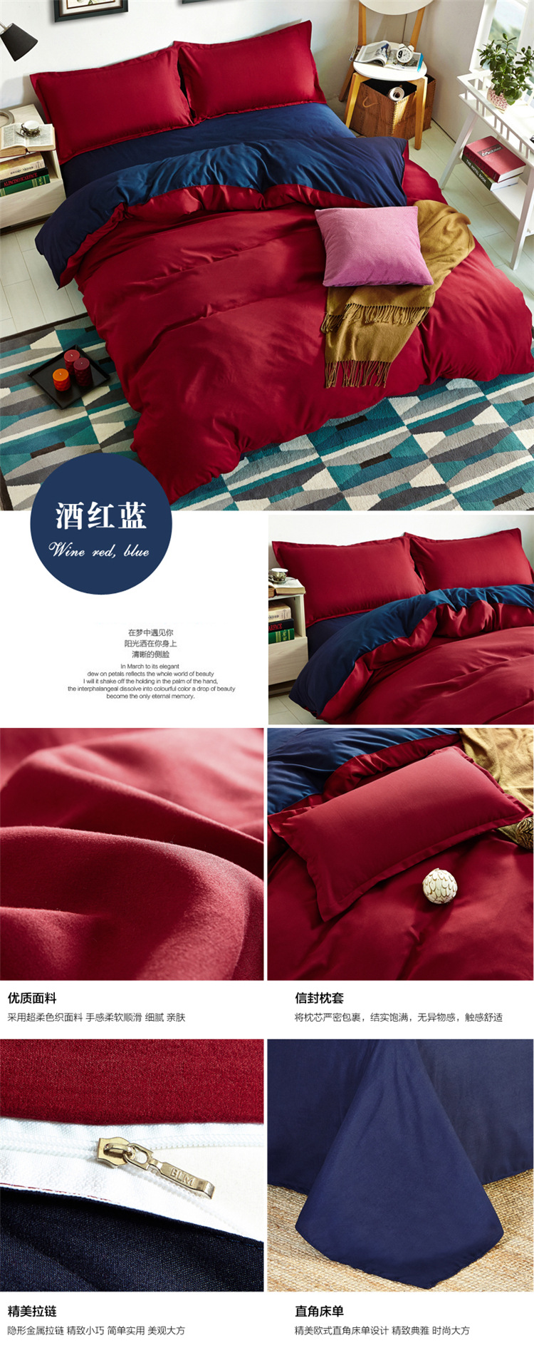 Заводская простыня пододеяльник набор из четырех предметов, однотонная шлифовка, набор из четырех предметов, шлифовальный двойной набор из четырех предметов 2,0