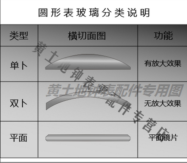 单卜凸起放大圆形表镜,规格:16mm—45mm 请备注所需要的尺寸