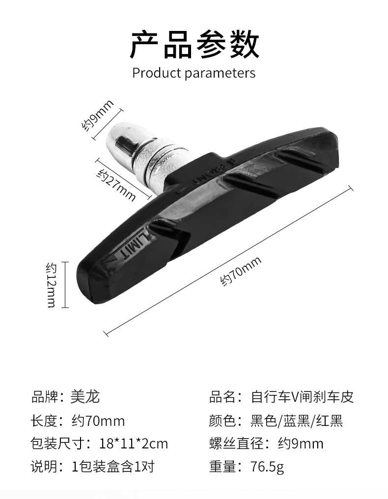 自行车V闸刹车皮,螺丝需要使用5MM内六角扳手