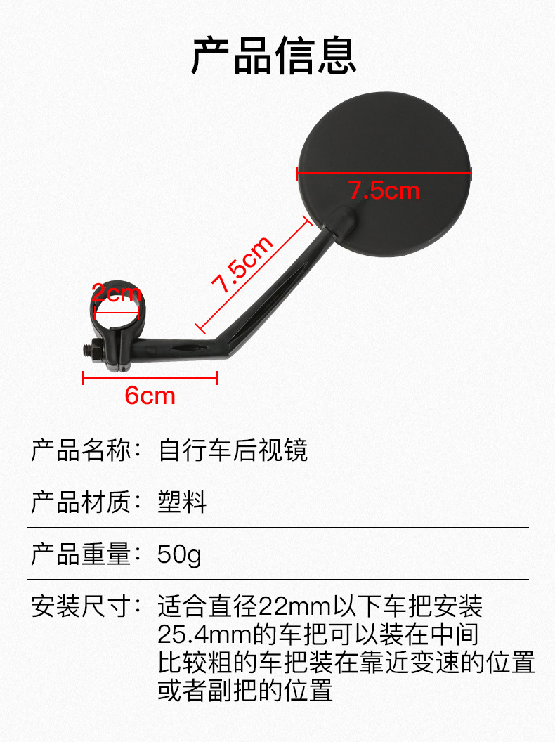 安装尺寸:适合直径22mm以下车把安装