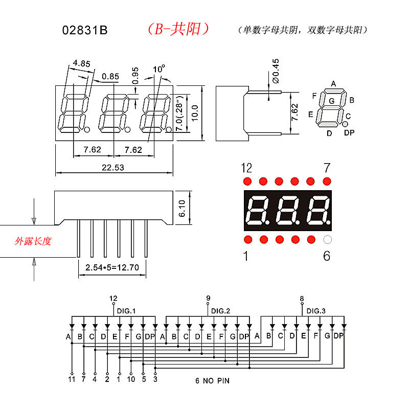 其它尺寸的位数码管,请点击 3位数码管