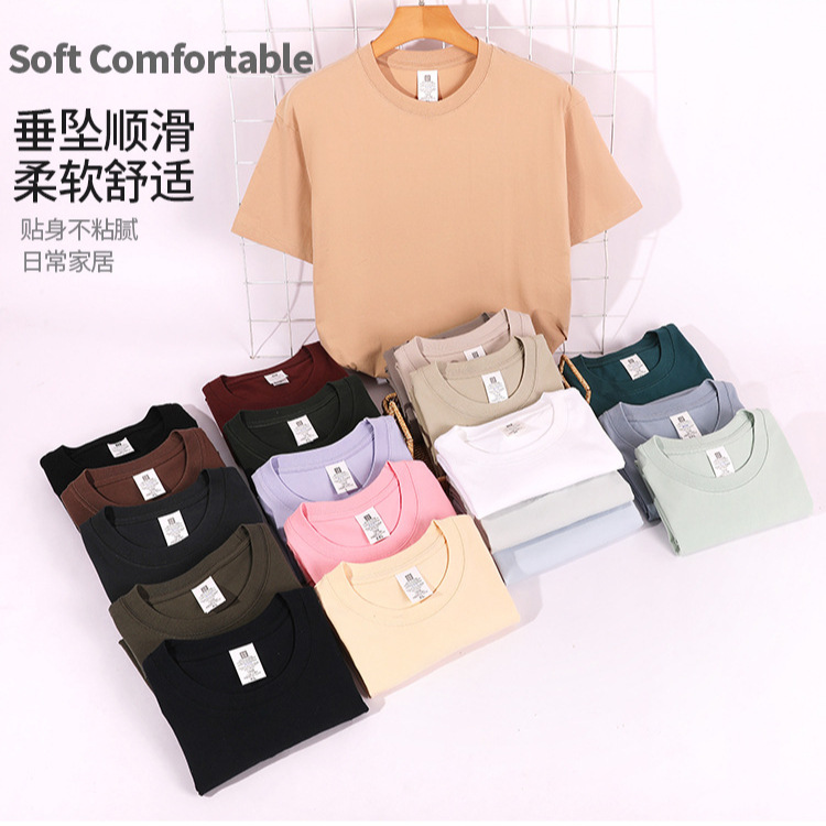 Мужская футболка из плотного хлопка Ice-feel, футболка из чесаного хлопка плотностью 230 г, свободного кроя для лета, с круглым вырезом, дышащая, с короткими рукавами, для ношения поверх другой одежды.