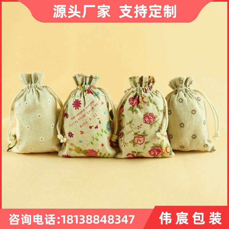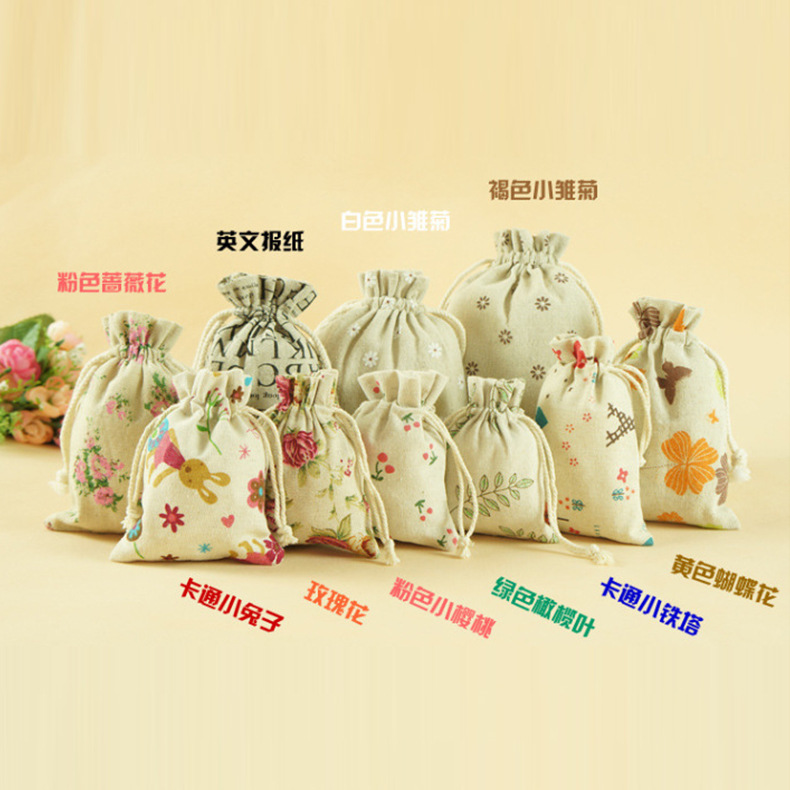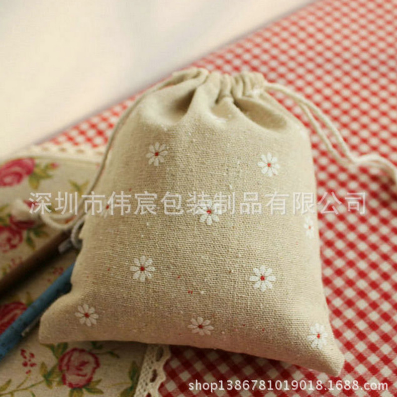 Поставка фабрики белья Пакет Карманный подарок печатных ромашка льняной мешок шнурок Эко-белье мешок подгонять