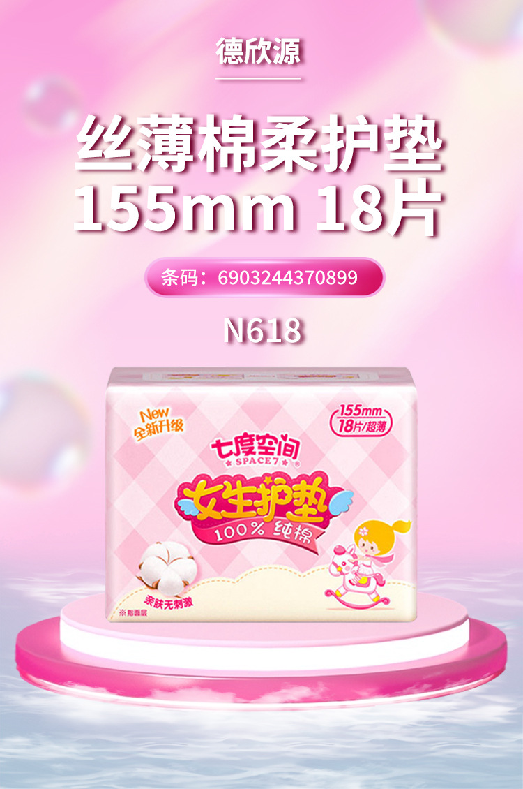 Оптовые гигиенические прокладки Seven Dimensions Space Girls' Care из тонкого шелковистого хлопка, мягкие, без запаха, 155 мм, 18 штук, N618