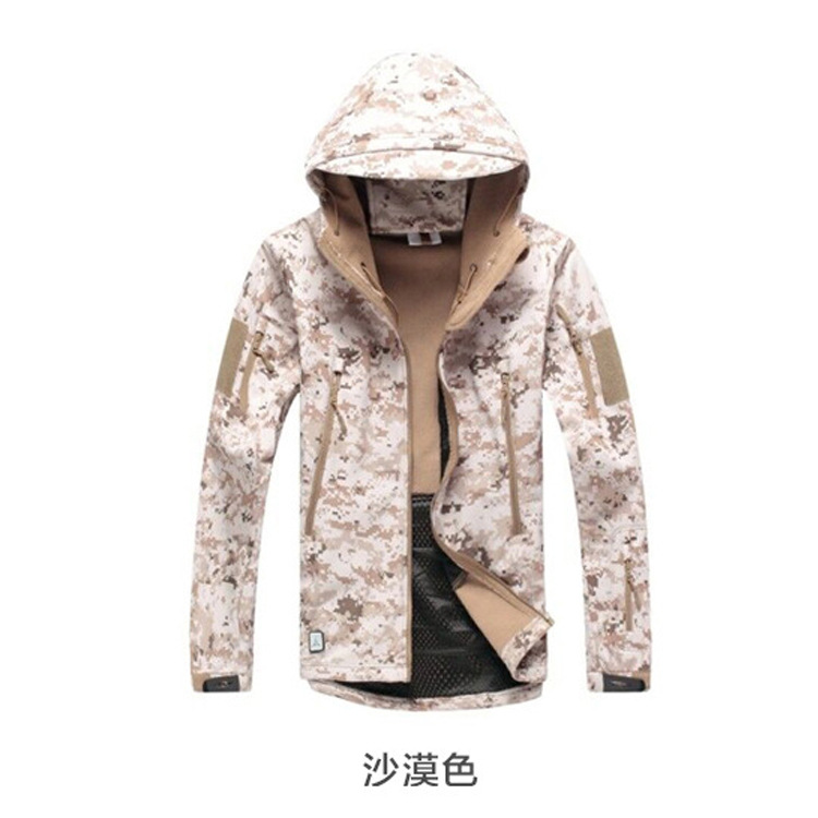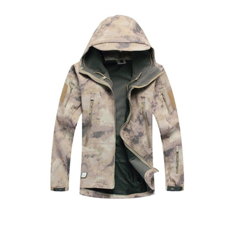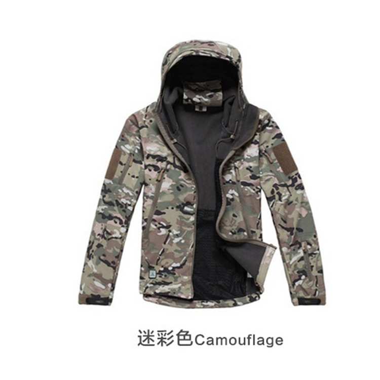 Мягкая оболочка мужской зимний утолщенный теплый водонепроницаемый дышащий камуфляж с капюшоном