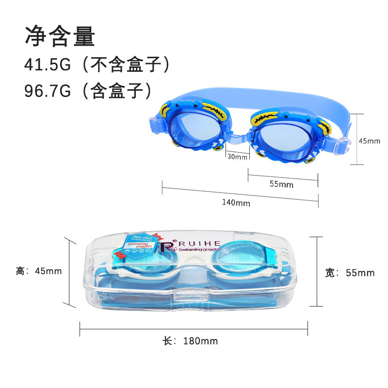 Ruihe Детские Водонепроницаемые плавательные очки HD для девочек и мальчиков, плавательные очки с рисунком краба, Заводская поставка