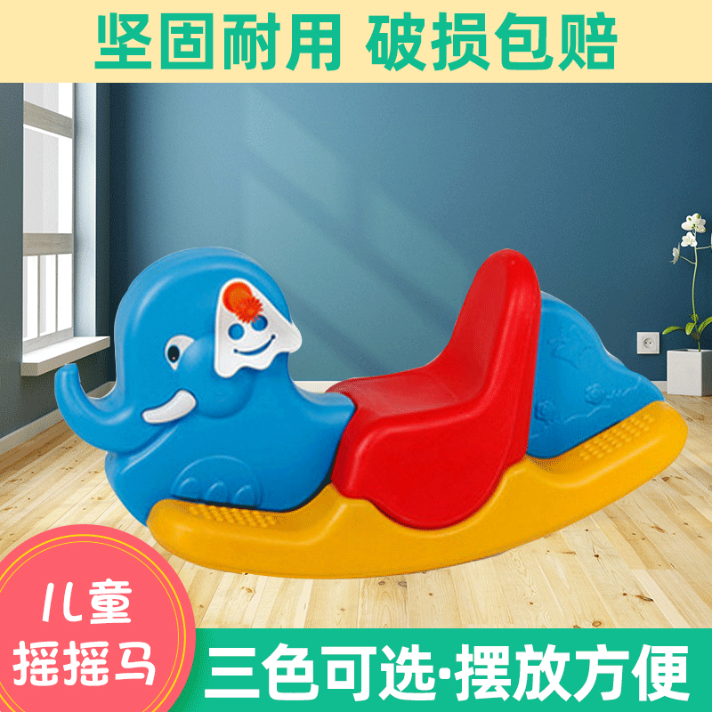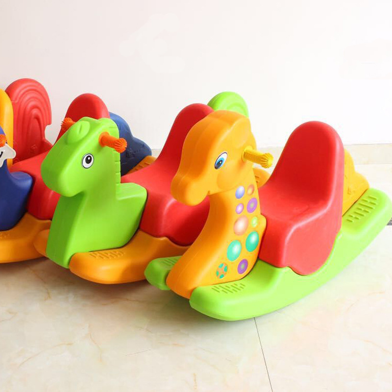 Детский сад утолщенный детский трехцветный детский пластиковый большой лошадка-качалка животное маленькая троянская игрушка в помещении и на улице качалка музыка