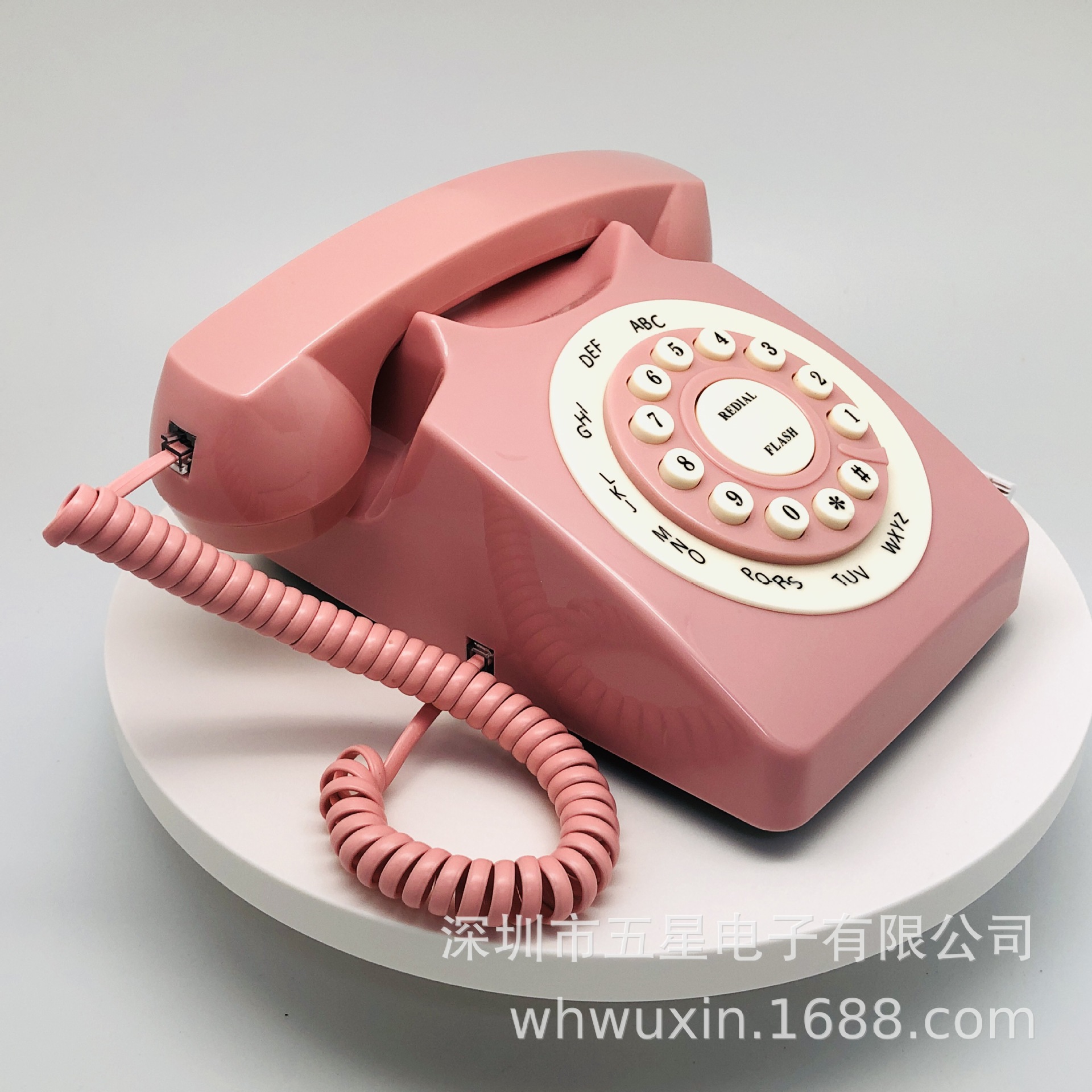 粉红色复古电话,60年代经典电话/家用电话/有线电话/家庭/酒店有线电话【坚固的手柄支架】有线电话由环保的ABS塑料制成,在保持坚固的同时又不失复古特色。【清晰的通话质量】优质的电话机智能语音芯片可让您享受高品质的通话,抗干扰系统,以l00%的声音传达您的音。【大而清晰的按钮】经典键盘足够大,您可以清楚地识别它,而不必担心键盘太小而看不见。复古电话采用世界上60年代的传统设计,并采用ABS材料,因此电话保持了优雅的外观并经久耐用。