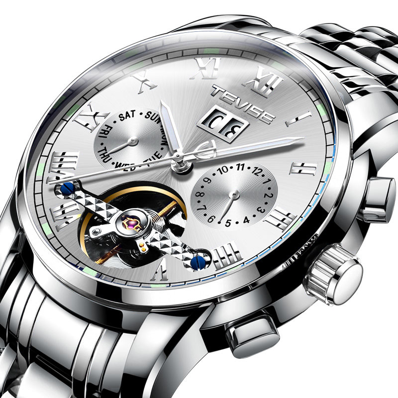 Новые часы TEVISE с турбийоном и календарем, мужские классические повседневные модные часы, механические часы, оптовый поставщик.